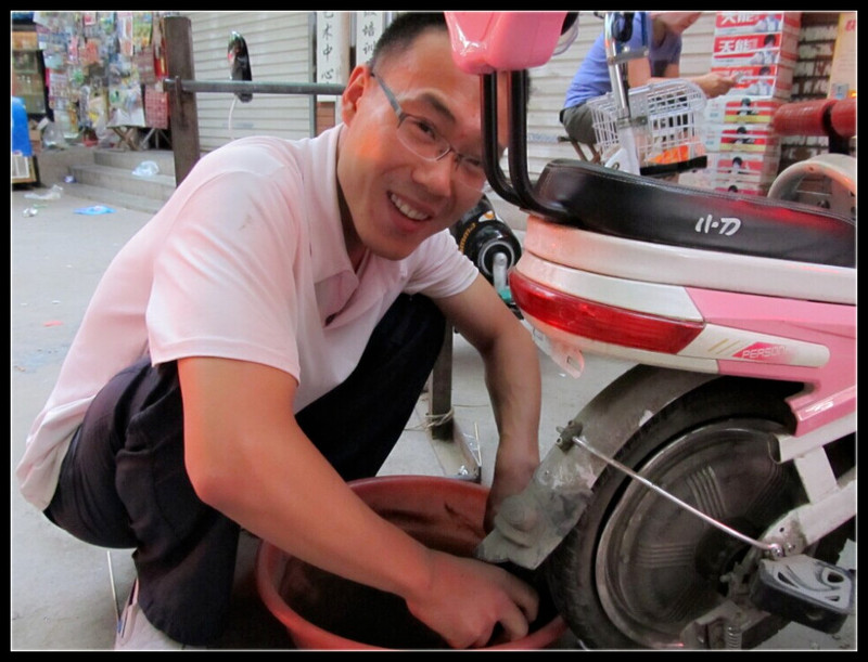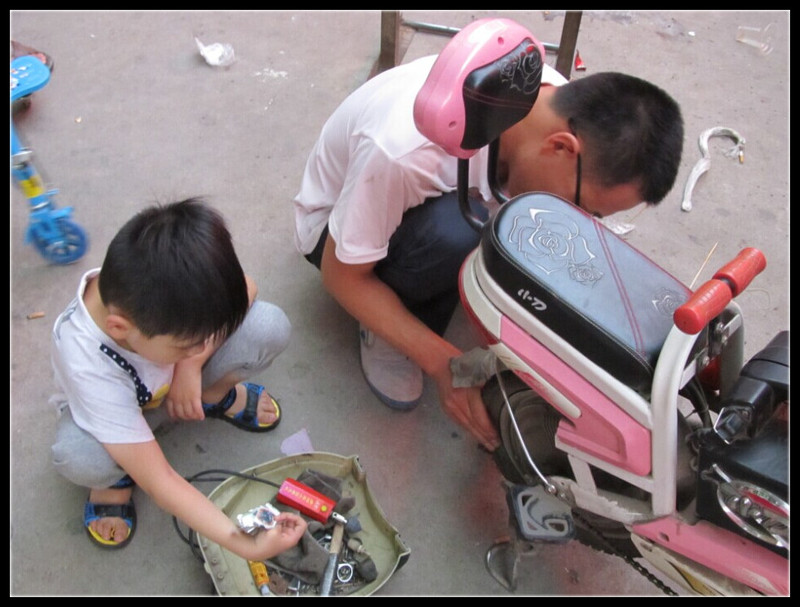 ![]() 今天去接Aric放学的时候,突然发现电动车的后车带没气了。无奈下只得推着电动车去接Aric,可是把我累的要死。Aric看到我推着车,又是一阵撒娇,最后我只得妥协,小家伙竟然站在车电动车的前面,由着我推着车和他往回家的路上走。在路上,Aric说着他在幼儿园的趣事,还给我拿出了一张红色的邀请函,竟然是明天幼儿园组织的一个家庭日,可是Aric却说明天是幼儿园的舞会。我是没力气跟他说的,满头大汗听着他高昂的演说。 ![]() Aric的表舅舅,也就是我的堂哥,在我们小区附近开了一家电动车专卖店,我们每次都是去那里修车的,免费,还多方面的检查车子的问题,其实还是有熟人好办事啊。到了表舅舅那里,Aric就兴奋的跑下车去喊舅舅,堂哥出来后问怎么了?我说不知道车子怎么回事,可能扎带了吧,也有可能慢跑气。堂哥帮我检查车子,Aric在旁给表舅舅打下手,一会递个钳子,一会递个螺丝刀,实际上根本用不到这些东西啊。 ![]() 堂哥把车带弄了下来,放在水里找破洞的地方,找了很久终于找打了,Aric比表舅舅还兴奋,两眼紧紧盯着车带子,手也跟着放在水里摸着车带。在修车的过程中,Aric一直询问着表舅舅是怎么修车的?有什么车子是他可以骑的?什么时候才能自己骑车啊?表舅舅很安静的听着,时不时的解答着Aric的问题。我到隔壁给堂哥买了饮料,调侃堂哥,也就你能这么用心听Aric说话,还给他解答。堂哥看着Aric说,谁叫这孩子讨喜呢,把Aric逗得哈哈大笑。 ![]() 终于修好了车子,堂哥又翻看外带,寻找扎带的原因,终于找到了一根小小的断了的螺丝钉,就这么个小东西,可害的我满身大汗啊。Aric看着没事做了,向表舅舅道了谢,跑到了钢琴学校,我在堂哥店里和堂哥聊着天等着Aric放学回来。 ![]() 小家伙帮着表舅舅递递钳子啊、螺丝刀啊什么的。 ![]() 来给堂哥拍张照片,笑的那叫一个开心啊,哈哈 ![]() 找到了扎带的原因,竟然只是这么一点儿螺丝钉的尖