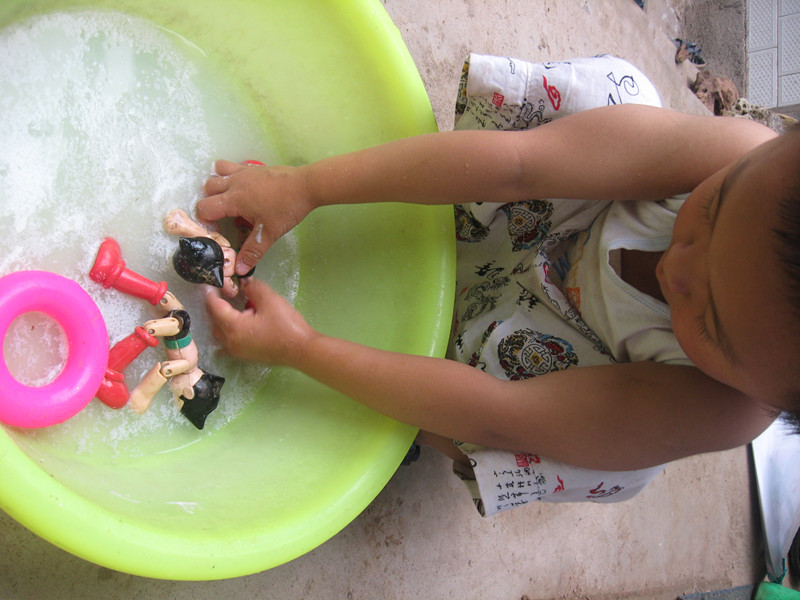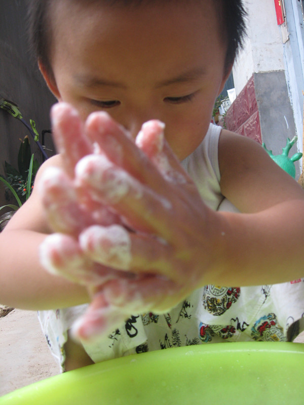 也赶紧让宝贝试试吧,洗洗灰色的小手,喜欢泡泡的宝贝多转了几圈才肯放下,不停地搓着小手玩弄着泡泡,冲水也不舍得,最后还找来了铁壁阿童木来给他们洗澡呢,哈哈,真是有意思!