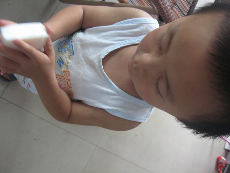 宝贝迫不及待地要开启,估计是当“果冻”了吧~严实的包装还真是难住了宝贝,还是我帮他打开, “Goat Soap”的字样清晰看见!看外形好像是经过层层卷制而成的,一环套着一环的样子!淡淡的奶香四溢,宝贝禁不止把鼻子再靠近一点儿闻个痛快!是很不一样的奶香味!轻柔不刺鼻!