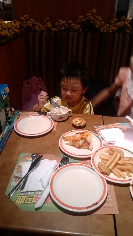 ![]() 自从上次罐罐的表姐请我们去吃了披萨,罐罐就喜欢上披萨了,还经常说好吃,本来儿童节时也是打算去吃的,去到那里看见排队的人实在太多了,只好放弃了。 ![]() 而这次是因为前两天他姨妈和我们一起回去看外公,然后本来是说下午带小朋友去看变形金刚4的4D的电影,所以下午就兴冲冲的带着孩子们去了。谁知道到那里一看,本来是打算看4点20的,可惜票已经卖完了,只有8点多了,想想要看3个多小时,还是改天看算了,本来他们都已经看了3DD ,这次是想看4D的,既然时间不行,只有改下次了。 ![]() 还是先看看罐罐出门的行头吧,好久不见的大太阳终于出来了,只是这一出来就很热了,草帽是必不可少的,而且公交车上都必须要开空调的,而且一般车上的空调都比较强劲的,所以,要给罐罐带一件长袖子衣服,可以随时添加的,这样才不容易感冒的 ![]() 哈哈,又被妈妈抓拍到可爱的笑容 ![]() 咦,怎么竟然睡着了,原来路上很堵车,再加上起来早了,直接就靠在妈妈腿上睡觉了。 ![]() 这是下午由于哥哥和姐姐没看成电影,就在商场里面闲诳,直到5点半了,赶紧去吃披萨去了,晚了就又要排队拿号等着了。 先给罐罐来个奶油冰淇淋,凉快一下,再给了他两块披萨,等他自己慢慢吃到,我才好去拿另外的吃的 ![]() 姐姐给他拿的蛋挞 ![]() 这个是鱼排,好像不是很对大家的胃口 ![]() 寿司是哥哥最喜欢的 ![]() 各种各样口味的披萨,其中的培根是罐罐最喜欢的 ![]() 芒果布丁,特别小巧的小迷你碗,连罐爸都吃了好几个 ![]() 当然西瓜是少不了的,还有很多就没有一一拍照了 ![]() 看看咱们的小吃货,吃了两块披萨,两根小香肠,薯片什么的战斗力不是很强哦,而且竟然没一会的功夫又睡觉了,不过这次是躺着那长沙发上睡的 ![]() 这家披萨自助餐在我们这里的江北区的步行街的中心地带,位置不错,生意还特别的好,大人是50一个,小朋友身高1-1.4米的是28一个,超过1.4就按照大人价格收了,还是有点小贵,记得原来吃其它自助餐小朋友都不收费的,只能说是每个餐厅的规定不一样吧 本作品未经作者许可不得转载,转载请征求作者意见。擅自转载使用,将保留追究其法律责任的权利!