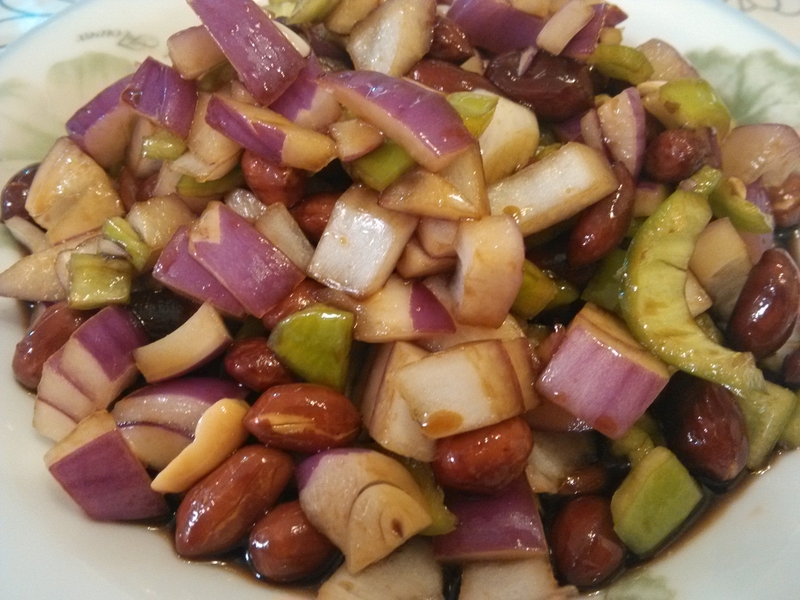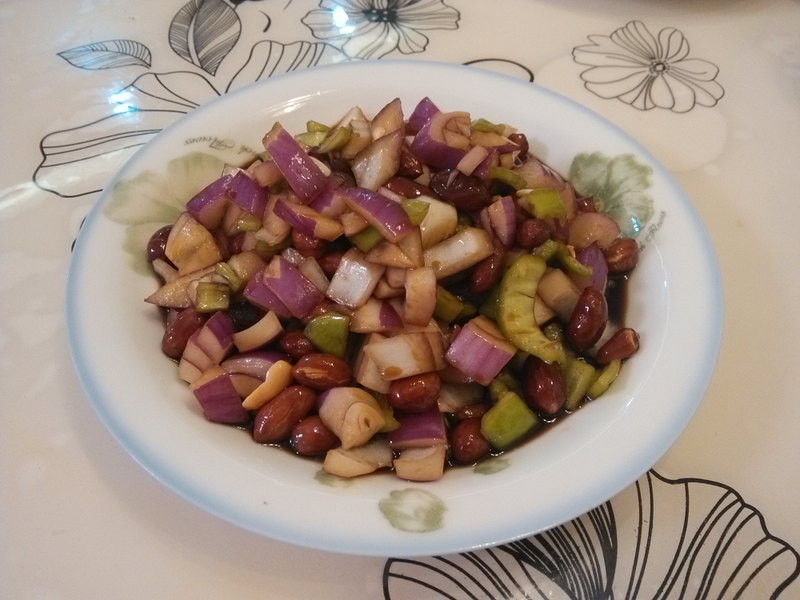 前几天去饭店老公点了一盘老醋花生吃了不少,酸酸甜甜辣辣的我也挺喜欢,吃到最后饭桌上其他菜都有剩余,就这盘老醋花生全部解决出来了,哈哈,当时我就在想,回家一定要研究一下这道菜怎么做,一点点花生、圆葱、尖椒,成本才几块钱,饭店一盘要价¥12,还是在家吃比较划算 回家以后百度了一下食谱,发现原来做法也挺简单,想吃就得愿意动弹,这不我试验了一会,今天就来跟大家分享一道爽口下酒菜--老醋花生 主料:花生 圆葱 尖椒 配料:老陈醋 生抽 糖 盐 做法: 1.圆葱、尖椒切小粒备用 2.锅里添花生油,不用加热,直接把花生米倒入,用锅铲不停翻炒,均匀受热 3.当花生米表皮稍微变色,噼啪响的时候盛出,彻底放凉待用 4.讲陈醋3勺、生抽1勺半、糖1勺半、盐适量调成汁,放入锅中煮沸,放凉 5.取容器,将圆葱、尖椒粒倒入,花生米倒入,调料汁倒入,搅拌均与即可 装盘,开吃 ![]() 注意:花生米一定要彻底放凉才能放入汤汁,不然不脆 ![]() 本作品未经作者许可不得转载,转载请征求作者意见。擅自转载使用,将保留追究其法律责任的权利! 评分记录