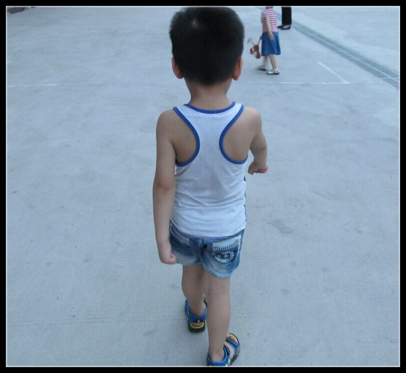 你家宝贝皮肤真的好白 所以穿小背心晒晒,晒出男人黑来