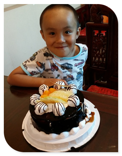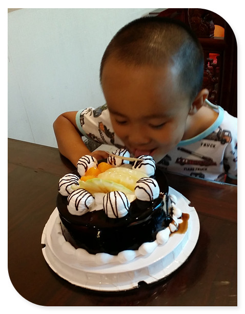 蛋糕拿出来,小家伙就一脸的开心显露出来