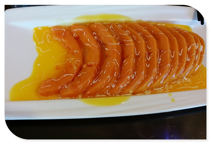 房间是谦爸直接订好的,是去年我们庆祝结婚纪念日的那间,同一个地点,不同的时间,不变的一家三口。菜也是谦爸点的,他熟悉老婆和孩子的口味啊,点了店里的招牌菜,也兼顾了各自喜好的口味。这个木瓜可是谦的最爱,小家伙每次出来吃饭必点的,一盘几乎都被小家伙吃光了。