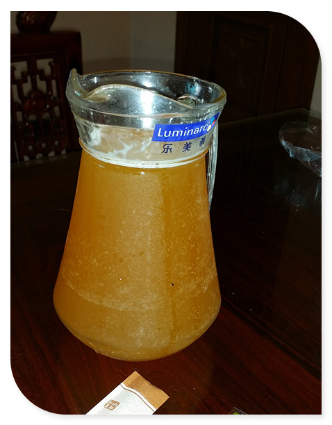 这里的啤酒是自酿的,分为黄啤和黑啤, 我们选择了黄啤,这样的杯子来了2个。