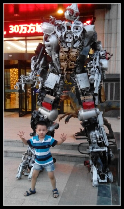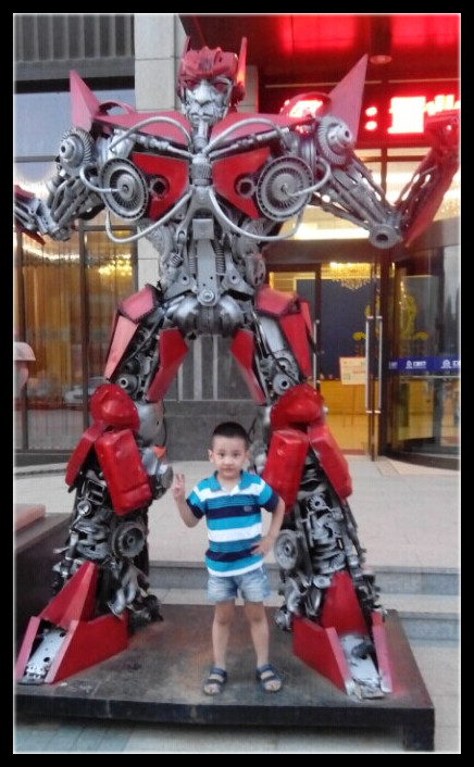 ![]() 周末我们一家三口都是在家休息的,可是到了下午老公和儿子就撑不住了,怎么说呢,就是没有当闲人的命,其实我是想耗在家里睡个大头觉啊,偏偏老公把我拽起来说不能睡啊,否则晚上又要失眠了。好吧,那我就陪着你们爷俩出去疯吧,可是做什么呢?我是没计划的,老公说我们以前那个家附近有个汽车人和恐龙模型展,有不少汽车人可以看。Aric一听可乐了,不是最爱的汽车人和恐龙吗?那赶紧滴吧,别错过了。 ![]() 我们到的时候可能有点晚了,所以没多少人,虽然没有那么热闹,但是由着我们自己看更自由。这是一个新楼盘的展示大厅,以这些汽车人和恐龙展来作为吸引顾客,在门口矗立的是大黄蜂和擎天柱,貌似是纯铁制作,Aric一看就喜欢上了,经过Aric的分析,他们是真的大黄蜂和擎天柱,只是没电了,而且要保护地球,所以就留在了这里,如果地球有危险了,他们就会立刻醒过来,然后打败外星人或者怪兽,再回到他们的赛博坦星球。 ![]() 我和老公认真的听着,偶尔相视而笑却又很无奈,这小子绝对的变形金刚迷啊!再继续往里走,还看到了其他汽车人,不过我都不认识,Aric倒是一一介绍着,还说有擎天柱的地方,就会有其他汽车人的存在。我问为什么啊?Aric鄙视的看了我一眼说,因为擎天柱是汽车人的首领啊。好吧,我孤陋寡闻了,但实际上我是知道的,只是一时没有想清楚这个小家伙在想什么。而在大厅里的小机器人,Aric说这些都是擎天柱和大黄蜂的儿子,额,虽然是有那么一点点像,但是擎天柱和大黄蜂会生儿子吗? ![]() 再看恐龙的模型展,那皮啊、肉啊,确实有那么点真实的感觉,老公把玩着大恐龙的尾巴,突然一甩,从我的脸颊擦过,吓得老公赶紧去抓,原来那尾巴被撕开了,里面是长长的铁片,而且非常尖锐,我都觉得我特侥幸,否则这铁片真把我的脸划破了,那估计得毁容了。经过这么一茬,我都没有看的心情了,老公讪讪的道歉后说请我吃好吃的,好吧,原谅你了,没有好吃的,看我今天怎么收拾你,哼哼。 ![]() 擎天柱: ![]() 大黄蜂: ![]() 如果问Aric最喜欢哪个汽车人?Aric一定回答,是大黄蜂 ![]() 还有一个超大的食草恐龙,就是差点给我毁容的恐龙啊 ![]() 某个汽车人,我不认识 ![]() ![]() Aric抱着大恐龙腿表示,恐龙真大啊。 ![]() 老公特搞笑,把手伸进了恐龙的嘴里,吓唬我们 ![]() 原本老公想把Aric抱到这个恐龙的身上,怕被赶走,没敢,哈哈 ![]() Aric说中间的两个是擎天柱和大黄蜂的儿子,额,有点像哈 ![]() 今天没带相机,用手机拍的,所以像素很差,那个~~凑合着看看吧。