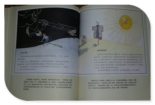 左面图讲的寓言故事是“农夫与海”,农夫看到被海浪吞噬到海底的船的时候流着眼泪诅咒大海,于是大海叫道:“你责怪我也没有用,是风掀起惊涛骇浪弄翻了船,当你在风平浪静的时候航海是非常平稳的”。不过看故事内容应该是渔夫与船更贴切内容的吧。但是这个故事所表达的寓意还是挺有深度的,如同交友一样,小人会在主人遇到的麻烦里添油加醋,反而激怒主人。右图画面的寓言故事是“北风和太阳”北风和太阳为谁更强大而争论不休,他们决定谁让行人脱下衣服谁就赢了,首先是北风使劲吹,结果行人越冷越添衣服,而太阳的照耀让行人热的受不了而脱掉衣服,这个故事尤其适合给孩子讲,要想让人心服口服的话,与其暴力强迫不如以理服人。 本作品未经作者许可不得转载,转载请征求作者意见。擅自转载使用,将保留追究其法律责任的权利! 评分记录
