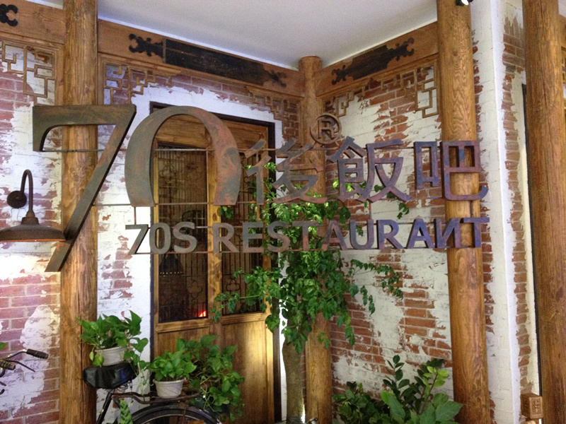 到达饭店门口,logo牌就做的很有特色,一股浓浓的怀旧味道出来了。