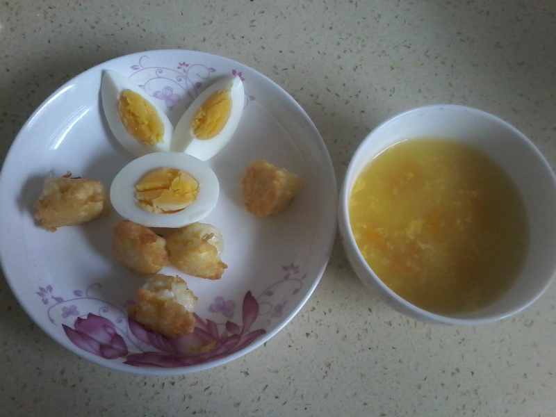 ![]() 昨天晚上想破头也想不出今天早上可以怎么给笑笑吃顿早餐,网上搜也找不到合适的.主要我也没有那么大能耐太难的也操作不了,临了要睡觉总算找到个合适的,米饭团子. 于是今天早晨一边学着网上找来的食谱一边发挥自己的创意给笑笑整出来一盆算是比较耐看的早餐来. 学着网上学到的方法把隔夜的米饭团成小团,不过我做了改动,我团的小丸子.这样就很适合笑笑吃了.打好蛋液放入少许的盐.把团好的小丸子放到蛋液里面裹一下.再放到油锅里面炸好,这样米饭小丸子就出来了. ![]() ![]() 接着就是我自己的想法了,把煮好的鸡蛋对半切开,一半当做兔子身体.一半再次切开就有了兔子的两只耳朵.炸好的小丸子来做兔子的腿和玩具皮球,于是我们早晨吃兔子就开始玩了. ![]() 笑笑吃的特别开心,当我把早餐放到桌子上喊他来吃的时候.他原本是说不吃,继续玩玩具.当我说今天我们早晨吃兔子,他立马好奇心大增.走来问我:"妈妈,兔子在哪里?"我指着盘子里面那只小兔子,小家伙一看就乖乖跟着我去洗手然后坐好等着吃饭. ![]() 吃饭的时候我们一边吃一边说要把这个兔子吃光光,特别我假装兔子恳求他:"不要吃我的耳朵啊,不要吃我的...."他就偏偏一定要把我不让他吃的部分吃光光掉. 最后吃到盘见光,碗也见光.统统吃掉,吃的还特别的开心. 以至于我们外出广场玩的时候,他两次[跑到不认识的大人跟前跟人家说自己早上吃了兔子的头,兔子的脚丫,兔子的..... 人家哪里听得明白他这说的什么意思,而后还要辛苦我来给他做翻译. 哈哈,这顿早餐的确是吃开心了.要是我能有双巧手和好创意就好了,天天就可以如此嗨皮的吃饭饭喽! 本作品未经作者许可不得转载,转载请征求作者意见。擅自转载使用,将保留追究其法律责任的权利! 个性签名