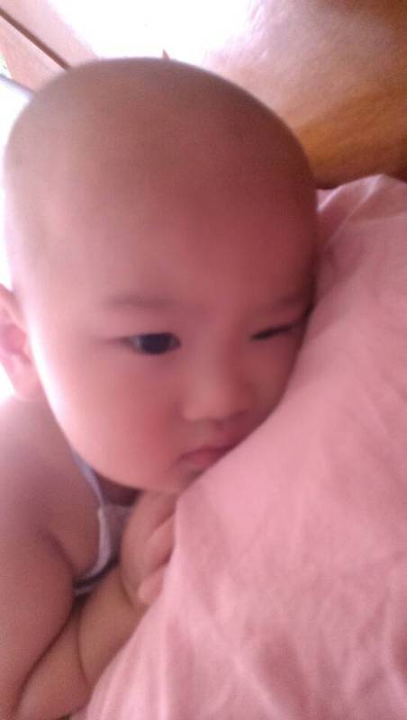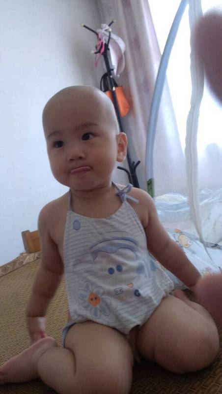 这是前几天拍的,拿来和现在的光头做个对比。这样看,添翼的头发也不是很长的,不过还是剪成光头会凉快一些吧。
