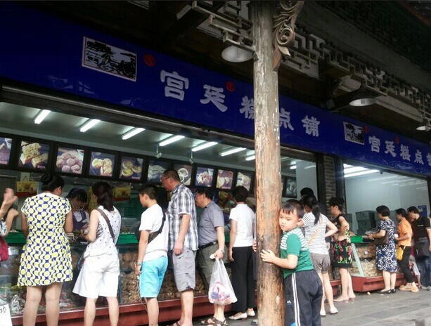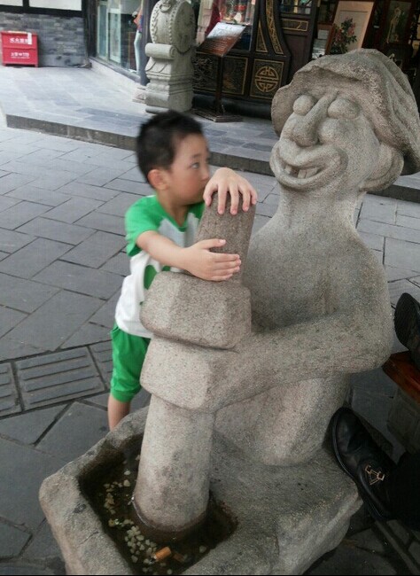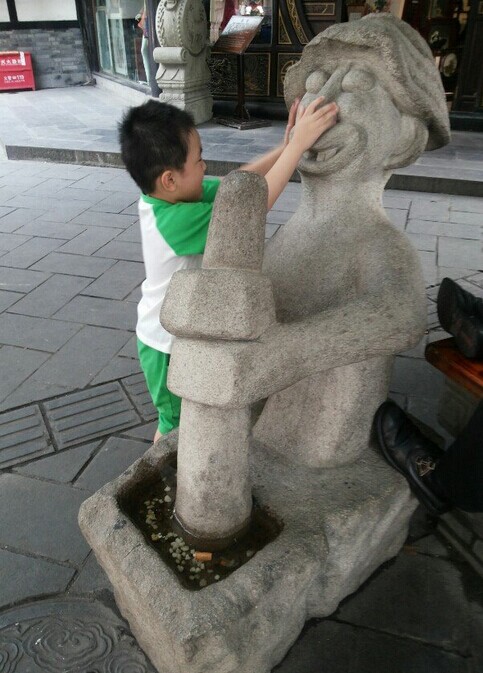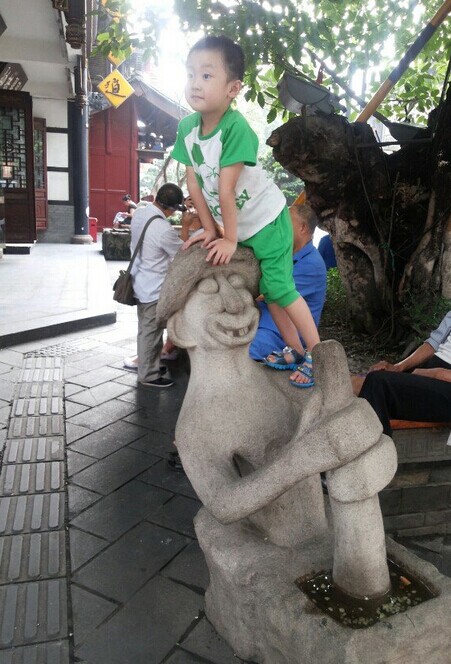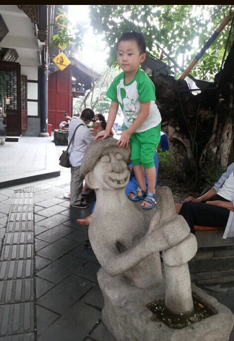 ![]() 话说和朋友们从春熙路分开后,因为我念念不忘在那文殊院附近的拿破仑糕点,于是决定去总店那里购买,因为这个自从去年去成都玩时品尝过,就感觉特别的喜欢,而且价格也非常的便宜,竟然才9.9一斤,网上要30几一斤呢,还不知道到底好不好吃呢。美食,就是吃了让人还想着吃的,这才是美食。 ![]() 老远就看见文殊院的标志,其实进去还有很远的 ![]() 沿途的街景都很古色古香的,那里的文殊院还是免费参观的,谁都可以进去烧香拜佛的,只是我对于这个不感兴趣,也就没有进去看了,直接就走过了。 ![]() 这里就是传说中的宫廷糕点铺,随时随地都是在排队购买,经常都有人是开车来购买的 ![]() 这就是我们购买的战利品,拿破仑糕点,原来是9.9一斤,现在竟然涨价了,要13.9一斤,还有千层酥,还有另外一种是夹心的糕点,那是罐爸指定要买的,因为这是他要吃的,呵呵 ![]() 东西买好了,罐罐和他姨妈,哥哥就在旁边休息,等我和老公去厕所了,谁知道刚刚去完厕所出来,悲具发生了,我就脚竟然被扭伤了,当时角裸处马上就肿了,扭伤时明显听见很大声音,很担心问题严重,但也只能在那附近稍微休息一下,就一拜一拜的拖着左脚去和他们会合。 老远就看见罐罐在那里玩得正嗨呢,一会摸摸雕塑的鼻子 ![]() 一会又去扳扳雕塑,看看能不能扳动 ![]() 后来就直接爬上面去站着喊我们的名字了 ![]() 看看这小子够调皮的吧 ![]() 这是往回走时看见的观光小汽车 ![]() 由于脚扭伤了,连整个脚背都在肿了,赶紧去买的云南白药喷雾,36一瓶,效果还真不错,只是过地铁安检站时,人家就在问,是不是带有喷雾的,我们回答是,人家又问,是不是云南白药,我们再回答‘是’,直接就过了,也没有叫我们拿出来看,看来人家都知道是什么东西