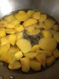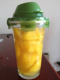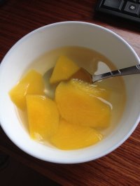 今天买菜,菜场门口一小货车黄桃,虽然知道这样的商贩缺斤少两的。没办法太吸引我,迈不动腿,也懒得跑的四块一斤。很便宜的,桃子都软不拉地的,就挑了十多个稍微硬点的,再多拿不动了。回来就赶紧做起来,冰糖不多了,头次做将就冰糖的多少,做了一多半。 做之前又度娘确认了下时间,步骤:其实还简单。我喜欢大快朵颐的感觉,所以切的块头比较大。 第一步:桃子洗赶紧、削皮、切块 第二步:黄桃块、清水、冰糖加入锅里烧开,转小火煮到软为止。差不多20分钟的样子。 第三步:关火,晾凉装进提前准备的瓶子,放冰箱。 齐回来就可以一起吃了,妈妈犒劳入学归来的宝贝的。自己做的没有添加任何防腐剂、既干净、又美味。喜欢的赶紧做起来,零难度,现在黄桃正当季,很新鲜的。黄桃不好存放,过这村就没这个黄桃了。呵呵,颜色很诱人吧,味道不是吹得。米奇是齐专属 ![]() ![]() ![]()