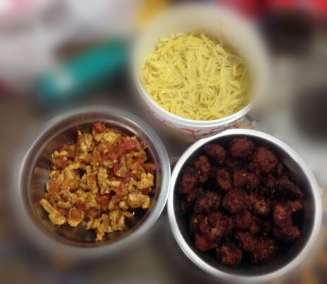 ![]() 罐妈是个懒妈妈,因为我家平时都是罐爸做饭,我也就当当指挥就好了,再加上天气热了,我又是那种一动起来就满头大汗的那种,那是更不愿意进厨房了。也就更加的懒了。只是今天早上突然接到我妹妹的电话,说是她中午要到我家来吃饭,因为她早上很早就到单位开会去了,如果中午赶回她自己家又觉得累得很,还不如直接到我家来,还要近多了。所以就直接到我家来了。 ![]() 既然是我妹妹要来吃饭,怎么也要去煮饭了,赶紧找冰箱里面现存的食材,发现有昨晚就炸好的肉丸子,还有番茄,鸡蛋,土豆,盐蛋。好吧,就利用这些食材吧。看看我做的那几样美食呢? ![]() 糖醋肉丸子,罐罐的大爱呀,刚一端上桌,罐罐就赶紧的先品尝了一个,连连说好吃,甚至在我进房间收拾东西时,就罐罐和他姨妈在桌子旁吃饭时,就听见他姨妈在告状了,赶紧出去一看,罐罐竟然把这一盆都端在桌子下面去了,说是他的,只能他自己吃,真是汗呀,啥时有这种不良习惯了,即使你喜欢吃,也不能是你一个独自霸占吃的呀,正好借这个机会又好好的教育了一下罐罐,让他明白不能这样做的道理,这样可太失礼了,一点也不礼貌的,人家会笑话你的,说得罐罐是连连点头,赶紧把菜又端上桌子,叫他姨妈一起来吃。这样才乖嘛,好东西都是要大家一起来分享的。 ![]() 番茄炒鸡蛋,很普通的一道家常菜,相信很多家里都有这道菜的,但很多孩子都很喜欢这道菜的 ![]() 青炒土豆丝,因为照顾罐罐,所以特地没放辣椒的,这样他吃得更舒服,当然,这样不是我用刀却的哈,是用那工具直接刨的土豆丝,很方便的,也很细的 ![]() 来张合影吧,3个菜,就是我们今天中午的简单午餐,看着还不错吧。
