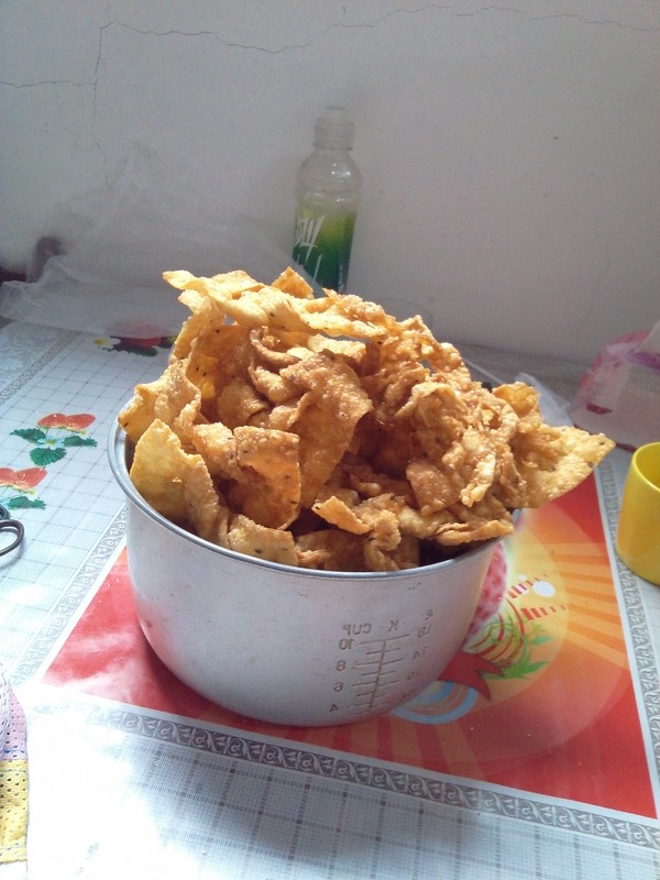 好巧的说,今年七月半是周日,我周六就带了小皮球去妈妈家,所以这次终于可以在家拜拜我的外公外婆了。其实七月半我们除了要焚香祭祀祖先以外,还有一件事情几乎家家户户都会做,那就油炸一些吃的,今天就给大家看一个我们这里的特有的----茶撒。