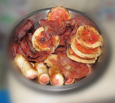 ![]() ![]() 前两天下了几天暴雨,天气也虽然凉快点了,虽然外面还是很大的太阳,但明显感觉没有这么晒人了,至少厨房里面也开始站得住了,平时高温时是根本不敢停留在厨房,因为太热了,一过去汗水就直接往下流,那还有什么心思做饭什么的,也就全权交给罐爸了,我就不去帮忙了,就窝在房间里面吹空调了,多好。 ![]() 直到今天下午,总觉得好像很无聊似的,才想起冰箱里面还有上次买的那些鱼排,雨丸什么的,反正都没事,干脆就去烤烧烤吃了。 ![]() 这些就是冰箱里面经常准备有的,随时可以拿出来烤,或者是煮汤什么的 ![]() 还有这个肉片,可是专门的培根肉,这可是罐罐最喜欢的,当时是买成50一包,罐爸可是犹豫好久才买的,总觉得好像有点贵,可看到罐罐喜欢吃的份上,什么都无所谓了,呵呵 这个原来从冰箱里面拿出来,还必须拿去微波炉里面解冻呢,现在的天气是直接放在厨房,一会的功夫,上面的冰就已经是全部化完了,就可以用了,真方便 ![]() 当然还是我的电饼档上场了,天气热了,都好久没用了,赶紧先搽干净再用,卫生还是很重要的,先靠的是鱼排什么的,这些烤的时间要稍微长点,后面才烤的培根肉,只是靠肉片就很手忙脚乱了,根本就没时间拍照了。 ![]() 这是应罐罐的要求,还特地把培根肉剪成很小一块的,方便我家少爷吃 ![]() 在烤鱼排前,我还特地问了罐罐的,你吃不吃鱼排,他回答得很干脆,不吃,我也没理他,还是直接烤好就放一边了,最后的事实是,等我把所有的食材烤好,看这满满一盆,发现少什么东西没有? 对了,我的鱼排不见了,到那里去了,不说都知道,肯定是被咱家少爷消灭了 ![]() 我也轻手轻脚的出去一看,天啦,我家少爷竟然是如此的逍遥的躺着在吃我的鱼排呢,而且还是最后一块了,其它的没有了,唔。可怜我的鱼排就这样没有了。 ![]() 罐罐呀罐罐,是有多么的逍遥呀。 ![]() 看到这里,我也终于明白一道理,对于吃货说的话,千万不要太相信了,特别是他们看见了食物,是根本不能抗拒的,呵呵。 别看罐罐吃了这么多,到晚上吃饭时可又吃了很大一碗饭的,最近的胃口是非常的好呀 本作品未经作者许可不得转载,转载请征求作者意见。擅自转载使用,将保留追究其法律责任的权利!