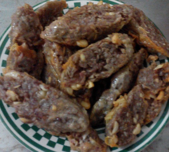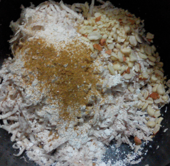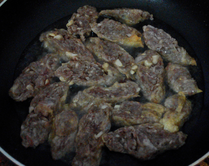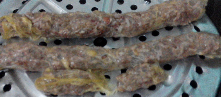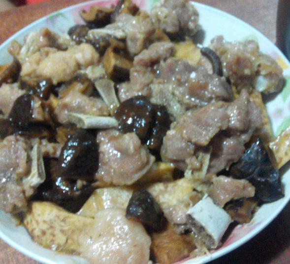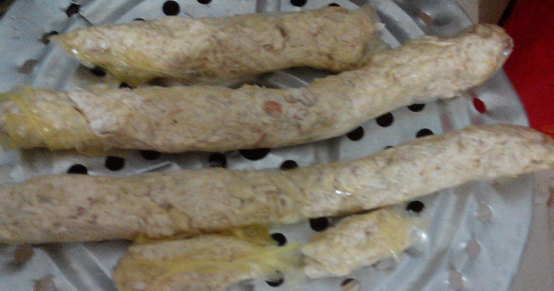 上周我们从外婆家来妈妈家的时候,外婆拿了两个大芋头给我们。我们一直没弄来吃。前天,妈妈看到芋头好像要坏了,于是赶紧弄来吃。而芋头,妈妈有个拿手菜,就是我们家乡的特色美食芋酥,也是我弟弟非常喜欢吃的呢。不过由于芋头有两个,挺多的,所以妈妈做成了两道芋头的菜,另一个就是芋头蒸香菇排骨。 这是用来蒸的芋头,切块后炸过,妈妈说这样芋头的口感会好一点。![]() 这是芋酥用的材料:芋头刨丝,加上花生米,再加番薯粉(生粉)和五香粉再加盐调味,然后混合搅拌均匀。 ![]() 我们家乡有一种很薄的豆腐膜,叫腐膜,将弄好的芋酥馅用膜膜包起来,捆成圆长条。 ![]() 然后放入锅内蒸熟。我妈用冷水开蒸,用了十多二十分钟吧,反正蒸熟就好。 其实这样切开就可以吃的了,如果怕热气的话就是这样吃。但是想要更香,则要炸一炸。 ![]() 斜刀切片后,放入油锅中炸。我没放太多油,半煎半炸的样子。直到两面炸成金黄。 ![]() 炸好的芋酥,很香,很好吃!由于光线不太好,拍得不太清楚。 ![]() 这是芋头蒸香菇排骨,放点酱油、盐和番薯粉等调味,芋头放最下面,上面放排骨和香菇,然后用电高压锅蒸熟。电高压锅蒸过的排骨,很软很烂,再加上芋头和香菇的香味,简直太美味了,很下饭。最下面那层芋头,更是让人回味呢!妈妈做的菜,就是美味!