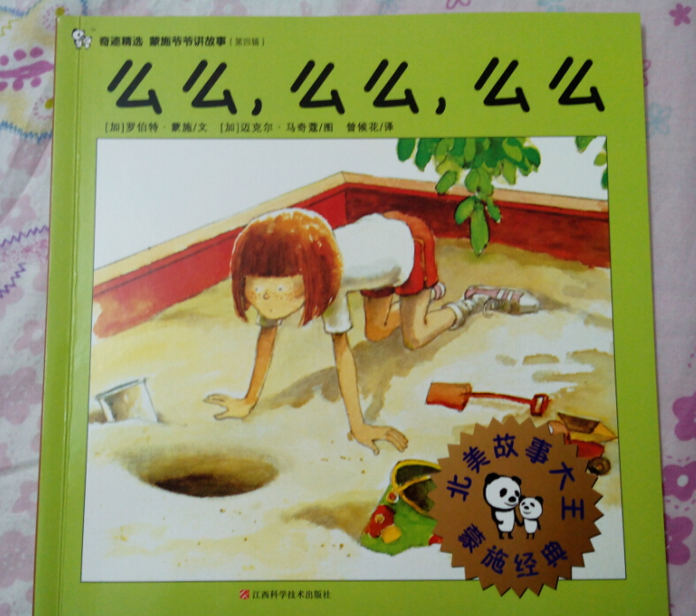 ![]() 阅读日期:8月25日 参与人员:妈妈和宝宝 阅读绘本: 《么么,么么,么么》 绘本特色: 可怜的孩子有家了 适读年龄:3岁以上 阅读心得: 《么么,么么,么么》是一个很有趣的故事,这是一个和小宝宝有关的故事。罗宾在后院看到一个洞,里面传出了么么,么么,么么的声音。于是她伸手去洞里掏,意想不到的事情发生了,没想到她扯上来了一个小宝宝。小宝宝什么都不会说,只会叫着么么,么么,么么。罗宾也听不懂小宝宝说什么,于是就想找个人把小宝宝接走。 对只有五岁的罗宾来说,肯定不可以照顾那么小的宝宝。而且她还需要别人的照顾,只是找谁把小宝宝接走,这也是一个让人头疼的问题呀!其实这个在地洞的小宝宝,就像平时那些被人遗弃的孤儿。有些父母把孩子生下来,自己不想要了,就随便找一个地方安置宝宝了。 家中已经有孩子的女人和养了很多猫的老太太都不愿意收留小宝宝,对她们来说,小宝宝没必要带回家。对于职业女性和需要别人工作的男人,要小宝宝也没有用。最后罗宾找到了一个司机,他家里正需要小宝宝,可怜的小宝宝终于找到家了。通过这个故事,也让熙熙明白,能和自己的父母生活在一起是多么幸福的事呀! 本作品未经作者许可不得转载,转载请征求作者意见。擅自转载使用,将保留追究其法律责任的权利!