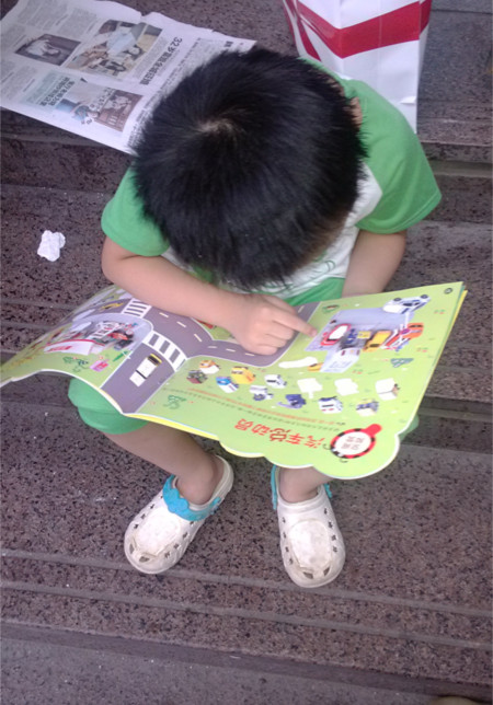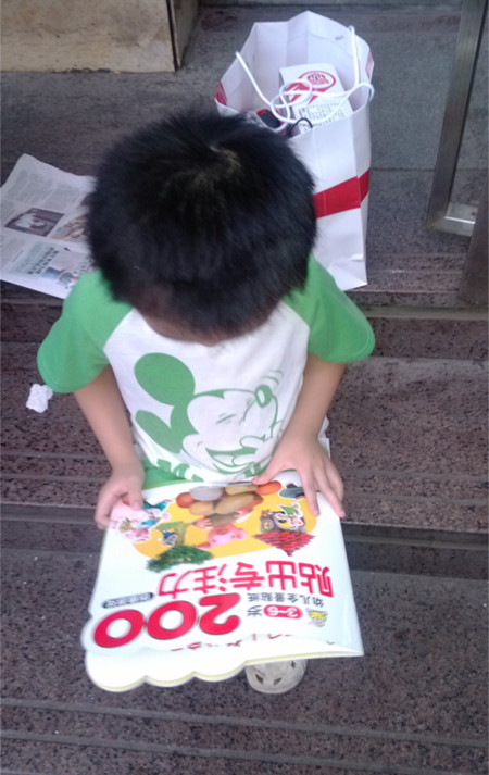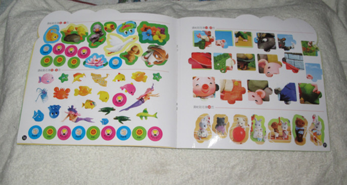 ![]() 上次我带着罐罐去过新华书店买过几本杂志,当时因为手里面还提着很多东西,干脆就放在书店的大门口,罐罐就坐在东西上面看着,我在里面去买了杂志就走,而我在里面买书时是时刻就能看着罐罐的,我要买书的地方离罐罐不超过几米的距离的,罐罐是绝对在我视线范围内的,而且也就2分钟的时间,所以才敢这么放心留下他一个人大门口的。 ![]() 可当时罐罐也是很想进来看书的,可因为儿童绘本是在六楼的,我那天又提着很多东西,实在是不方便呀,也就没答应上去看了。 ![]() 于是专门选了天下午带罐罐去新华书店看书去了,一到那里就直奔六楼去了,那什么有卖玩具的,但那里的玩具的价格都比较偏高,所以只能看看就好,还有个小型的游乐场,现在天气还是很热,所以现在去玩那个就太热了,要等凉快点再去玩了。所以,咱们还是以看书为主。 ![]() 罐罐在里面是左看右看的看了好久,最后才选定了这本3-6岁幼儿全景贴纸,刚出了大楼就在大门口就赶紧坐着看上啦。 ![]() 最喜欢当然就是这一页了,因为里面有很多车子可以贴的 ![]() 好了,还是来看看书的封面吧;3-6岁幼儿全景贴卫纸,书比一般的要稍微大点,封面上三只可爱的小猪,树木后面还躲着什么动物呢? 这本书在书店买成14.8,在网上购买就便宜多了,你懂的。还好我这本是他姨妈给我的卡,是她单位发的卡去购买的,也就相当于免费的 ![]() 被风吹倒的房子;糟了,大灰狼把小猪的两座房子都吹倒了,赶紧动手来贴一贴,说说小猪家的那些物品被吹散了呢?白色空余的地方就是专门用来贴贴纸的地方 ![]() 汽车总动员,里面有好多不同样式的汽车,请你帮忙贴一贴,让停车位上的汽车车头保持方向一致。这个可是罐罐最喜欢的,一路上拿着就想贴的,被我制止了,告诉他回家才能贴的 ![]() 哈哈,还有趣味拼图呢,也是用贴纸贴出来的 ![]() 看看,这就是书里面配的贴纸,大大小小有200张呢 ![]() 各种各样图案的贴纸呢,可把罐罐高兴坏了 ![]() 一回到家就赶紧铺上地垫,赶紧就贴起来了啦,我是帮他把那几页贴纸取下来了的,这样就更方便他贴了 ![]() ![]() ![]() 这次去书店看书,发现一个很不好的现象,象这种可以直接撕下来就贴的书,已经有很多书被撕下来贴上贴纸了,这样就导致与这本书是肯定不能再销售了,而且也让小朋友们养成了不好的习惯,认为可以随便的去玩那些贴纸书,不懂得这些是不能这样的,真不知道那些大人是怎么教的,连罐罐都知道,没有交钱的东西就不是自己的,也不能随便打开,随便怎样贴的。哎,素质问题呀。 本作品未经作者许可不得转载,转载请征求作者意见。擅自转载使用,将保留追究其法律责任的权利!