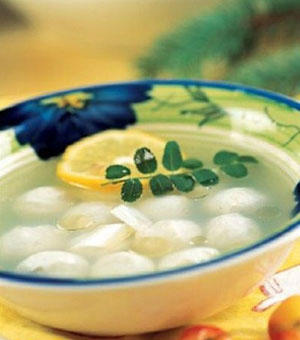【做法】 1.把鱼去皮和骨、刺后,取净肉,研碎。 2.将豆腐用冷水浸泡20分钟,沥干氽热,捣碎。 3.将鱼泥与豆腐泥混合均匀,做成小丸,放蒸锅内蒸,把鱼汤煮开后加少许盐调味;最后把蒸过的鱼丸放入鱼汤内煮熟。推荐原因:煮鱼丸中蛋白质的含量15~20%,属优质蛋白质,而且容易消化吸收。鱼类还富含牛磺酸,牛磺酸能促进宝宝大脑发育,已成为宝宝成长中不可缺少的营养。