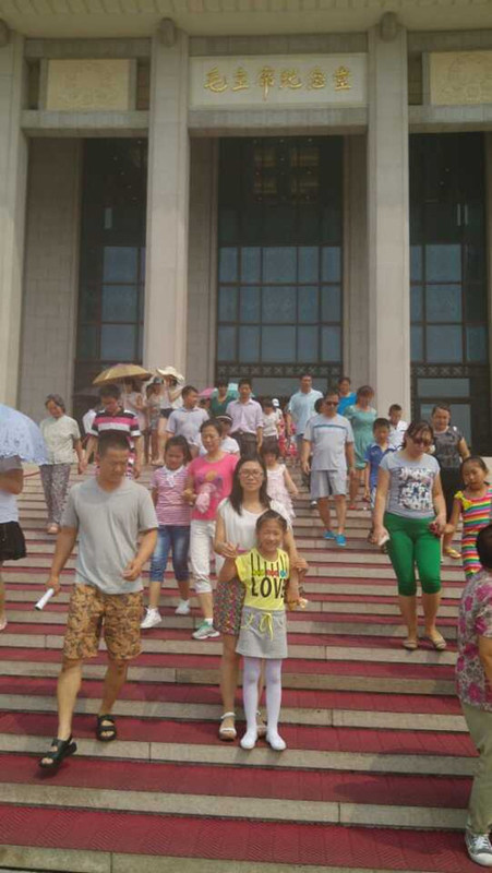 9日上午六点多到北京了,据说北京难得有好天气,可我们的这次北京之旅,天气很给力,蓝天白云,碧空如洗,心情也跟着倍儿爽。吃完早餐后,导游就带我们去参观毛主席纪念堂,我们每人买了一束黄菊花,以表敬意,女儿说,原来毛主席安静地躺在这里呀!