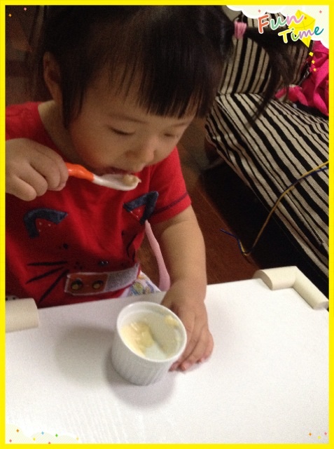 给小妞也来了一份布丁,这可是两岁的小妞第一次吃布丁呢!她先被冰凉的口感冻的有点摇头。随后,便大口大口的吃起来,最后杯中的一点点也不忘刮的干干净净。 本作品未经作者许可不得转载,转载请征求作者意见。擅自转载使用,将保留追究其法律责任的权利! |