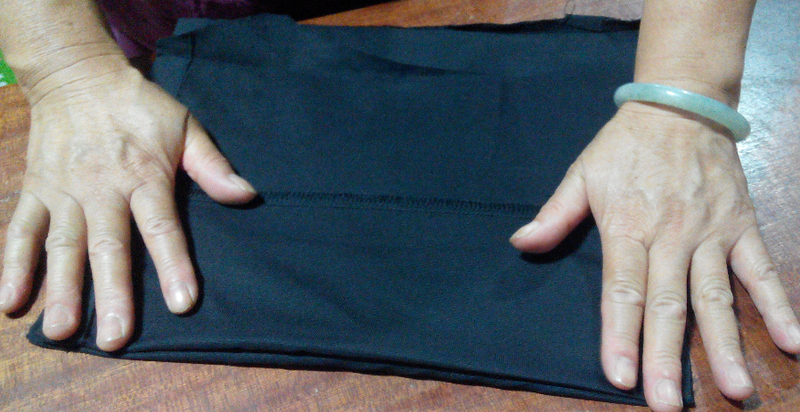 妈妈的双手,是最温暖的双手。她正在铺好剪下来的材料,打算再按孩子的尺寸重新剪裁一下。