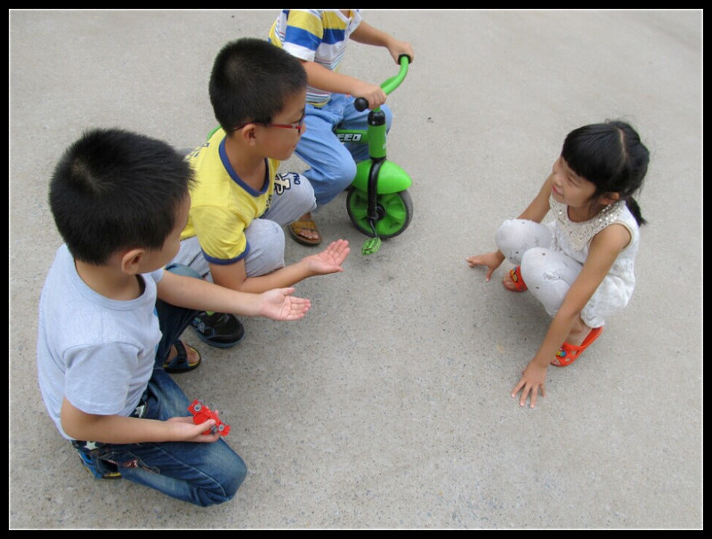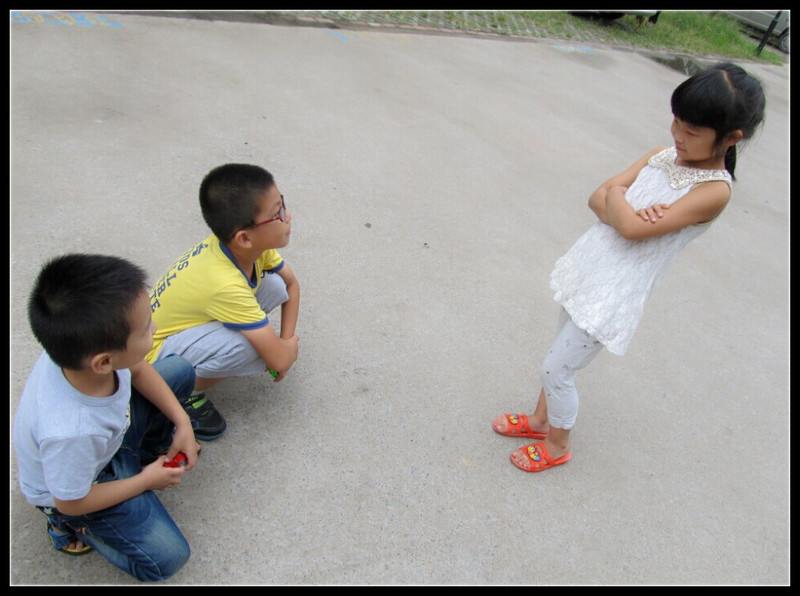 ![]() 今天在院里玩,让我看到了一个特别有趣的画面。Aric和小区里的大宝哥哥在一起玩,俩男孩玩原本应该是很活跃、很疯狂的那种,偏偏这俩孩子性格都比较稳定,玩的那叫一个悄悄的啊,嗓门都还没我大,我在旁吆喝着这哥俩玩,偏偏人家特淡定,让我旁边休息去。直接把我很晕的啊,这年头妈妈不好当啊。而在此时我们楼栋5楼的那个菁菁美女来了,小哥俩同时抬头看着她,而菁菁挽着自己的胳膊,站在对面。 ![]() 不自觉的我轻唱起“对面的女孩看过来,看过来,看过来!”把这三个孩子给汗颜的。哎,不好意思,真是不由自主啊。因为这幅画面实在太可爱、太有趣了。俩男孩一起蹲在地上玩着,女孩站在他们对面得意洋洋的看着,俩男孩抬头看向女孩。哈哈,想起来就觉得好好笑,然后被我拍下了这张照片,等他们长大后再看这张照片,真不知道会是怎样的一个情景呢?不过我还是蛮期待的,也非常期待哦。 ![]() 菁菁站着问:“你们在玩什么?” Aric回答:“没玩什么,就是随便玩玩。” 菁菁说:“一点儿也不好玩,我这里有更好玩的。” 然后Aric和大宝哥哥伸出手来,“有什么好玩的?拿出来我们一起玩。” 菁菁蹲下回答:“玩木头人吧?” Aric摇头,大宝哥哥摇头。 菁菁又问:“玩猪猪侠拯救白雪公主,我当白雪公主。” Aric点头:“肯定我又是猪猪侠。” 大宝问:“那是不是我做菲菲?我还是不玩了,做超人强还差不多。” 三个小朋友笑成了一团。 ![]() 实际上我们小区阴盛阳衰,女孩多一些,但是自从开学后,女孩们都去上学了,也很少下来玩,反倒这些男生,还整天在楼下打打小架、你追我赶的,看来家长们对男孩都有放养的态度啊。我还是很喜欢这些小家伙玩在一起的,一起长大、一起上学,这些小朋友应该都是发小的吧。 ![]() 对面的女孩你看过来,看过来,看过来,有什么好玩的交出来,交出来,交出来。 ![]() 本作品未经作者许可不得转载,转载请征求作者意见。擅自转载使用,将保留追究其法律责任的权利! |