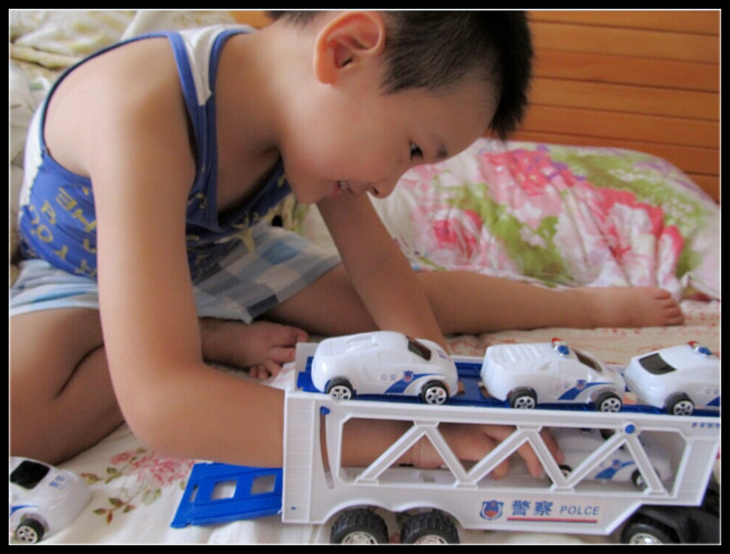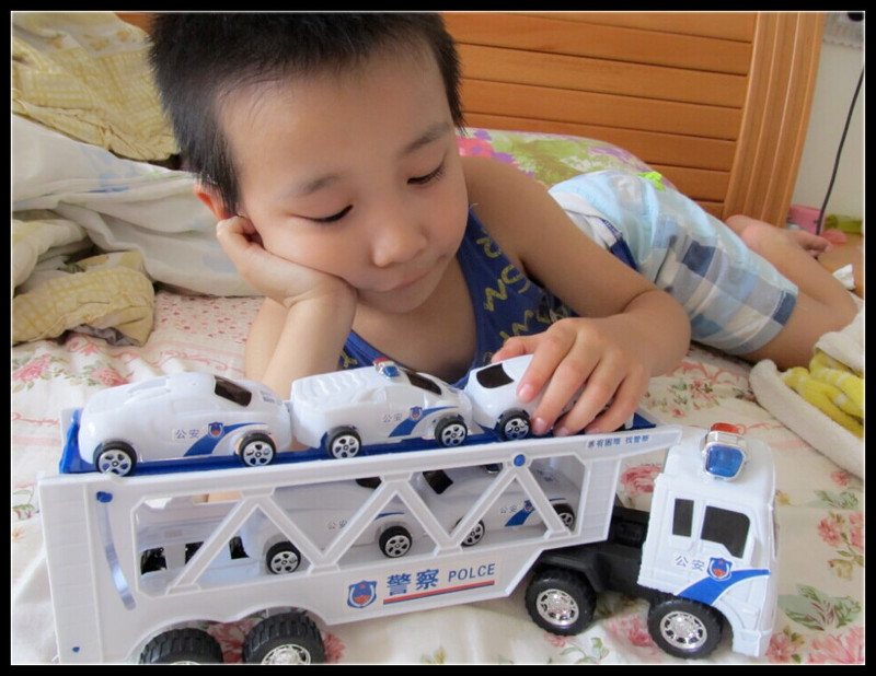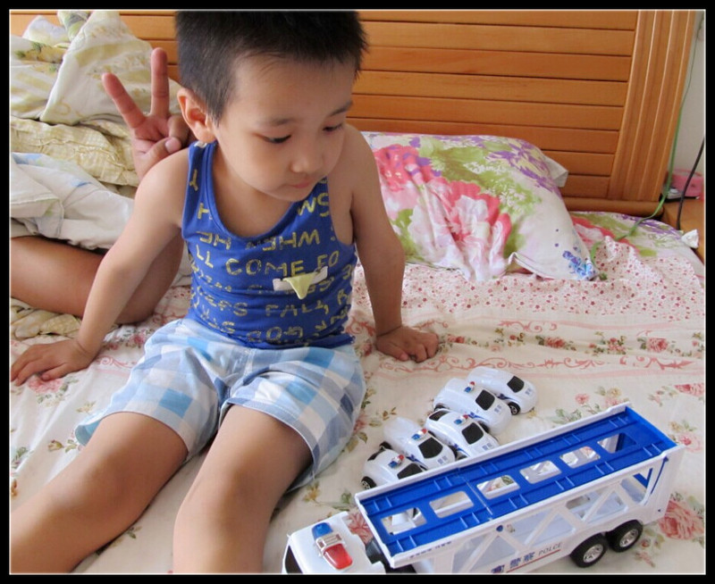 ![]() 这是Aric5岁生日收到的第二和第三份礼物,第一份礼物是我的网络闺蜜送的,忘记拍照了,就先来写第二份礼物吧。这是一辆超大的警车,警车上放有5辆小警车,是Aric的舅妈送的礼物。说起来并不值钱,但是却被Aric喜欢的不得了。因为舅妈买来的礼物是Aric最喜欢的警车,而最重要的是,这上面加起来一共6辆啊,可想而知玩起来得多爽呢。第三份礼物是舅舅送的,Aric没有拆开,说第二天在拆,那么我们今天就来看看这套警车吧。 ![]() 我还是挺佩服大人们为了孩子投其所好的这种精神的,对孩子太过了解了其实也不好,这样让孩子会养成一个不好的习惯,太过执着了,我还是比较喜欢Aric能够多方面的发展的。Aric拆开了玩具后,就迫不及待的让我欣赏他的新警车,车头是不是很像擎天柱啊?我认真地看了看,再认真的回答Aric,确实比较像。Aric满意的笑了,然后再让我看他的那些警车,是不是做的很逼真啊?我再认真的看了看,摇头说也不是很逼真啊,Aric瞪了我一眼。 ![]() 然后Aric跑到了卧室里,老公正好在睡午觉,Aric推了推老公问:“爸爸,你喜欢我的警车吗?”老公迷迷糊糊的说喜欢,这完全是为了迎合Aric嘛,可是Aric回答:“喜欢也不给你!”我“噗嗤”一声没忍住笑,老公也被逗乐了,干脆醒过来看Aric玩。Aric玩的很专注,无视了我和老公,我们干脆聊聊天,东南西北的瞎聊着,偶尔暧昧的笑笑。Aric虽然玩的专注,但是我眼中怀疑Aric在偷听我们说话,因为他偶尔的言语完全符合我们的谈话。 ![]() 再看Aric,小家伙很快找到了玩的方法,原来车厢上的板子是可以放下来的,这让Aric倍感兴趣,把小警车滑下来,再滑上去,玩的那叫一个不亦乐乎。偶尔发出阵阵笑声,这让不知所以的我们也迷糊起他的笑声来。不过Aric玩的一向很有规则感,别看他好似把这么多小警车玩的乱七八糟,但是只要你细看,就会发现Aric玩的玩具,总是放的很有规则,有它的意义。看得出这个玩具深受Aric喜欢,礼轻情意重,感谢Aric的舅妈送来的生日礼物。 ![]() 超级大警车,内含5辆小警车 ![]() Aric拆开后,就拿到了我们屋里给爸爸看他的礼物。 ![]() 玩的倍儿开心,一个劲的乐呵呵。 ![]() 向妈妈显摆他的一大五小,共6辆警车 ![]() 很有规则的摆放着 ![]() 哪怕拍照也不安心,还得看着他的警车,额,Aric的后面,爸爸在干嘛捏? ![]() 本作品未经作者许可不得转载,转载请征求作者意见。擅自转载使用,将保留追究其法律责任的权利! 评分记录