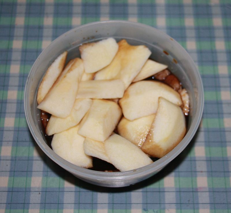 香喷喷的肉,甜甜的果味,肥瘦搭配的肉好嚼不腻,关键还很好做,美中不足是有点糊,卖相不够好。 下次争取更成功吧。