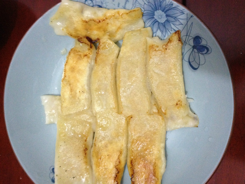 配料:盐、花生油、酱油、十三香、鸡精 所有东西都准备好,先来剁馅料。肉切小肉丁剁成肉糜、秘密武器是姜提鲜去肉腥、大葱只用葱白全部剁滥,白菜剁滥 ![]() 所有的食材剁好,就可以加佐料了,我家习惯花生油两大勺、盐、鸡精、十三香这些都估摸着放的 ![]() 一会在搅拌,先去和面,我是用温水和的面,据说烫面的口感好点。面和好醒个20来分钟。揉面、就成一个个大小均匀的面团、擀皮,包锅贴了,区别于饺子的这个是捏上边、两边开口,我包的也不是很好看,好在家里对这外表要求不高 ![]() ![]() 我用的是电饼铛,打开电源,锅热了一勺油,均匀的涂抹上下两面,锅贴入锅整体,盖上热个一分钟,加入没入锅贴一半的淀粉水,差不多10几分钟,锅内无水分了就差不多。关电源,闷个几分钟。期间齐可能饿了,一直说妈妈好香啊,经不住诱惑的齐已经早早坐在饭桌前等着了,黄黄的嘎嘣脆的锅贴出炉了 ![]() 来张我家小吃货的照片,锅贴配绿豆粥