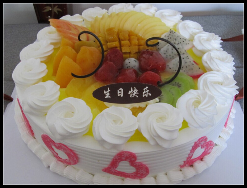 很漂亮的生日蛋糕呀,这个生日宝宝很开心了。