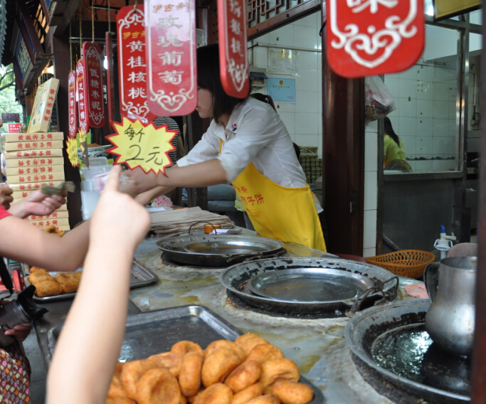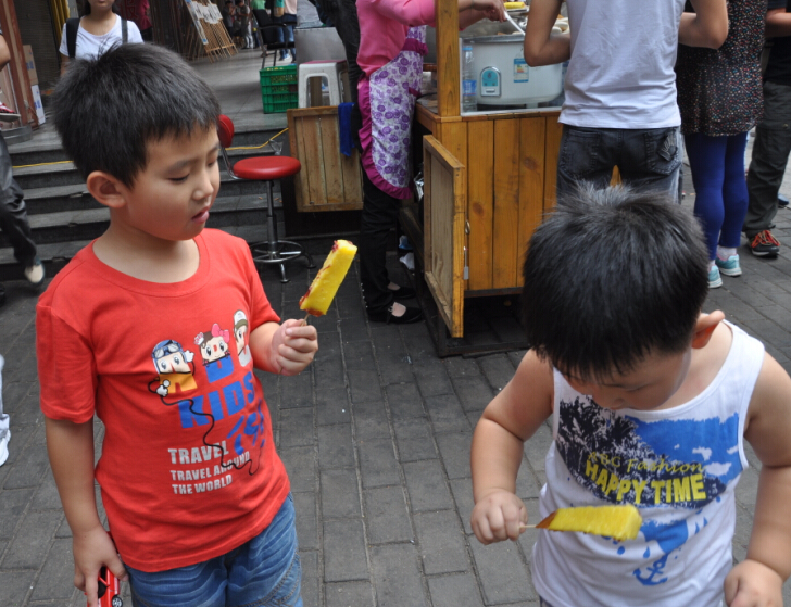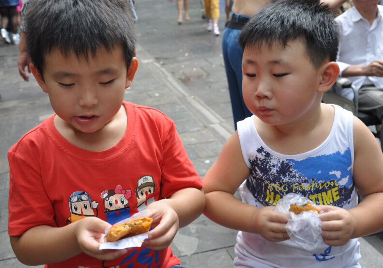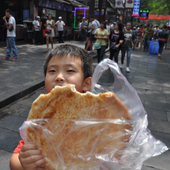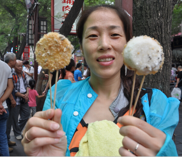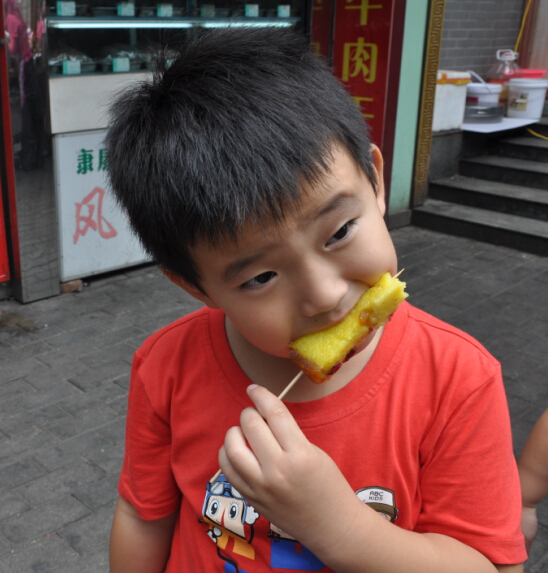 中秋小长假前临时决定带孩子们去西安玩两天的,因为是在中秋节的下午才能回到家,也没有准备什么中秋大餐,所以就来嗮嗮我们去西安著名的小吃一条街——回民街吃到的一些美食吧。 这是一条回民街,在市区鼓楼的下面,去了那里之后那叫一个人多啊,回民街自然吃的东西都是和牛羊肉有关的了,街区的进口出首先看到的是买一种油炸小土豆,和什么糕来着,忘记名字了,看着挺好吃的,就给孩子们买了来吃,尤其是那个桂花糕沾上玫瑰酱,口感对于喜欢吃甜食的我和牛来说非常的合胃口。三块就那么一小块,三口就吃完了。往里面走到处都可以见到买这两样的美食的摊位。 ![]() ![]() ![]() ![]() 来了回民街那肉食是肯定不能放过的,牛一直都盯着眼前的那一串串大大的羊肉串和鱿鱼串了,嚷嚷着要吃,还要辣的,弟弟可吃不了辣味的,吃上还舞蹈上了。纯羊肉的,味道不错,买少了。每吃够。 ![]() 这新疆的馕全国各地都会有卖的,托马斯想吃了,妹妹就给买了一张,比他们哥俩的脸都要大好多,也不知道是饿了还是其他原因,说这个也挺好吃的。在我们这里从来都没有说过,吃的稀罕自然会感觉味道不错。我也撕掰的吃了好几块,的确挺好吃的,在太原怎么也是没有这样的感觉呢?难道就是因为旅行的缘故,在外面吃 什么都香?!! ![]() 去西安前大概在网上看了看关于小吃的介绍,这个柿子饼也是著名的小吃之一,并且我们找到了吃货 攻略里面大家推荐的这家店面,各种味道的都有,2块一个,先买了5个不同口味的,都长的一个样子放在一起我们都不知道哪个是什么口味的了。孩子们先一人拿了一个品尝着,好像和我们的月饼和油糕类似,我们要的几个味道都是甜的,吃的同样又香又甜的。 ![]() ![]() ![]() 妹妹手里拿的这种叫镜饼,外形就好像一面小镜子一样,也是 用那种糯米粉蒸好的,外面沾上一些白砂糖和果脯,还有一些商家会在上面做一些简单的卡通模样来吸引年轻人,孩子们尝了一口不爱吃,两个我和妹妹享用了。 ![]() 我们是汉民,所以吃包子的话是不喜欢吃牛肉味和羊肉味的包子的,可大家看到了这是最最著名的贾三包子铺,条幅上写的一个熟悉的地名——太原。呵呵@原来刚在太原也就是我们这里参加了面食节还获奖了。孩子们嚷嚷着要吃包子,我们站在门口讨论了半天,关键是告诉孩子这不是猪肉包,担心排队排到了吃上一口不是要的口味那多浪费呀。最终决定还是不尝走人吧。 这里许多的有名的店铺门口都是排的好长好长的队伍,这对于我们这样带孩子的特别的不方便,一个人排队吧,另外的一个要看孩子,满大街都是人稍微不留神就担心找不到孩子了,所以排队人多的再好的美食我们都不去买,还是孩子的安全重要。 什么肉夹馍了,什么酸菜炒饭了,还有牛肉面,biangbiang面了,我们统统都没有吃到。 ![]() 这是一碗牛肉丸子胡辣汤,稠乎乎的一小碗要6块钱,里面就三个丸子,其他都是白菜萝卜和豆制品熬制而成的,外加粉面勾芡,大火上煮。胡辣汤自然就是要放很多的胡辣粉了,四个人里只有我一个人吃辣,先买了一碗尝尝,如果好喝再要,尝了一口非常合我的口味,妹妹尝了一口也说挺不错的,虽然不是一家名店,但只要吃的合口味就OK了,管它是不是有名气还是没有名气呢。下次有机会再去品尝那有名气的吧。 ![]() 小吃街很大,好吃的满大街都是,绿豆糕,羊肉泡馍,鲜榨石榴汁。。。。。。真的好多 好多,这也算是我们于以往不同的一个中秋节美食了。 本作品未经作者许可不得转载,转载请征求作者意见。擅自转载使用,将保留追究其法律责任的权利! 评分记录