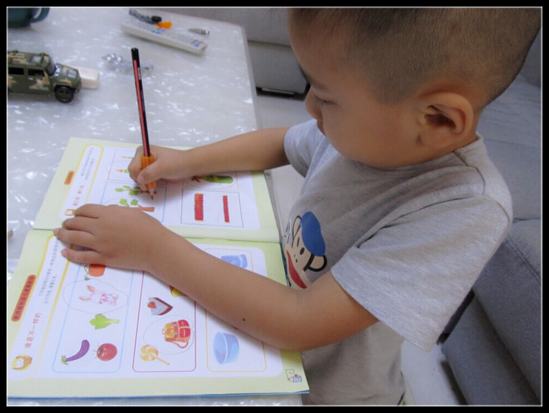 子凯幼儿园还有专门的练习啊 我这次地带拿下几套数学的 泉也很开心的完成