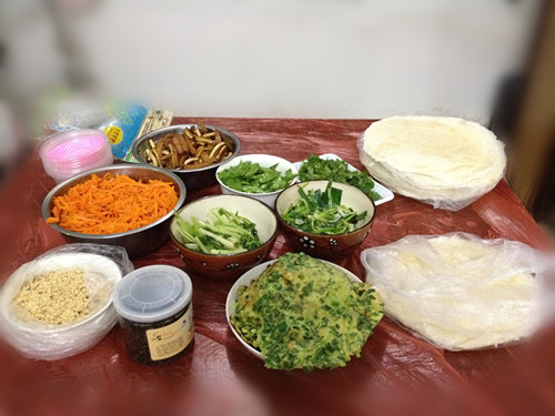 虽然卷的菜不一样,不过我们这也有这种吃法