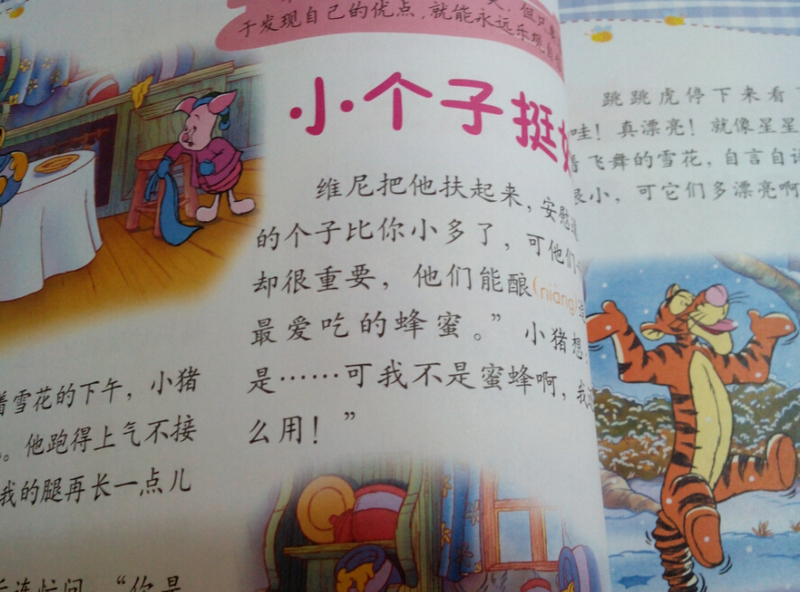 适读年龄:3岁以上 阅读心得: 《小个子挺好》是关于小猪的故事,它的个子长得比较小,跑起步来也不够快,想帮维尼拿东西的时候也够不着。为此小猪有点苦恼了,觉得要是自己能长高一点就可以了。其实不是长得高就好,这都是相对来说的。每个人都有自己的长处,有些事情,需要高个子或小个子才能完成。 屹耳长得比小猪高,可当它的尾巴掉在灌木从下面时,只有小猪可以帮它的忙。这时候屹耳觉得小个子比高个子好,也是在这个时候,才让小猪释然了。这会它才明白,虽然自己长得小点,可在关键时候它也是有大有用处的。 看完这个故事,我告诉熙熙。我们不要去羡慕别人的长处,因为他自己本身就有自己的优点。虽然在同龄孩子里,熙熙并不是高个子,可是有些事情,他还是做不来的。不过没有关系,等他长大后,就可以像爸爸妈妈一样了。 本作品未经作者许可不得转载,转载请征求作者意见。擅自转载使用,将保留追究其法律责任的权利! 评分记录