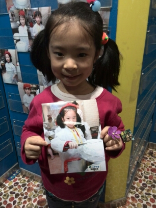在比如世界的出口处,有一个选择相片的地方。那里摆放了很多孩子们在体验职业中由比如世界的员工专门拍摄的相片,相片很大,很清晰。25元一张。女儿找到了自己的相片。我们就把它买下了! 注意,这个相片是要花RMB的哟~~ 可不是比如币了!哈~