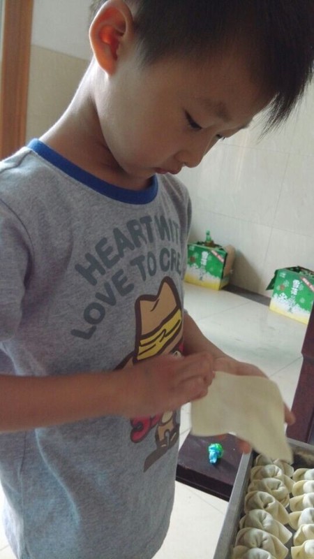 然后点点点就用自己的方法包了好几个不一样馄饨,有元宝形的,有柱子形的,还有蝴蝶形的,蝴蝶形状的馄饨最好看,我说我要吃那一个馄饨,点点不愿意,就说他要自己吃那些不一样的馄饨,还说谁包的馄饨就是谁吃,妈妈包了很多,难道都是妈妈吃么。
