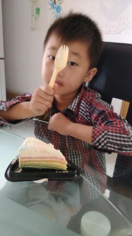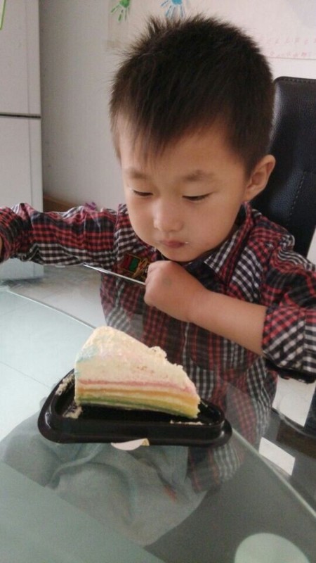 玩了很久我们才回家的,回到家点点才吃了彩虹蛋糕,彩虹蛋糕有好几层,每一层的颜色不同,吃起来的味道也不一样,都是用水果做的,所以这么一个小小的蛋糕要二十元钱呢,主要是用料好,做工也复杂,所以这个小蛋糕算是奢侈了,以后买普通的蛋糕就可以了。