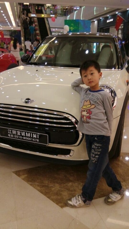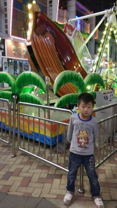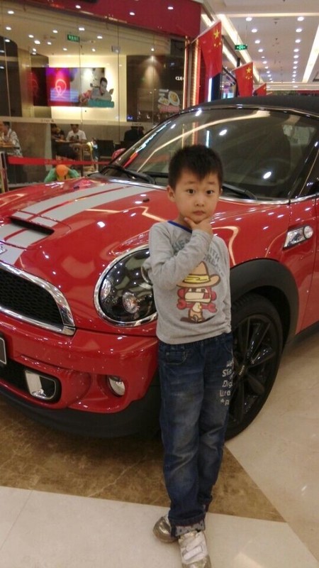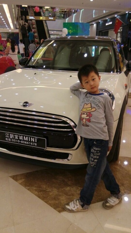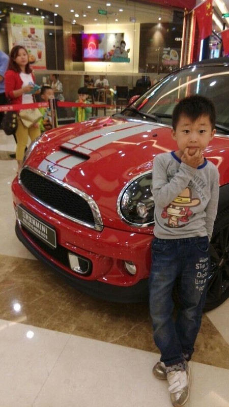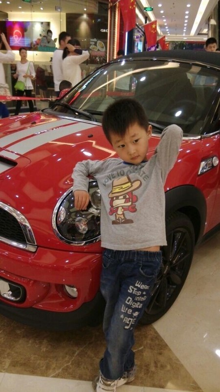 夜逛万达金街 在外婆家吃完晚饭回到家还挺早的,点点爸爸建议说我们一起去万达金街逛逛吧,我们三个好久都没有去逛街了,所以我们就一起去逛街了,看看有什么好看的,有什么好玩的,金街上的活动还是很丰富的,有各色小吃买,有荡龙船,有旋转木马,还有笼中飞车看呢。 我们经过荡龙船的地方,点点就在旁边拍了一张照片,因为这个荡龙船实在也没有多少意思啊,十元钱荡几分钟,浪费的/。我们看见里面有一些宣传卖骑车的人在做宣传,好多好看的小汽车,宝马Mini感觉很不错,点点在汽车前拍了一些照片,还算配合,拍的照片都很好看,很帅气,因为我们夸点点帅,所以点点越来越配合了,然后拍了很多照片。