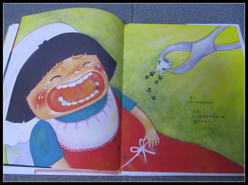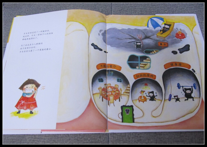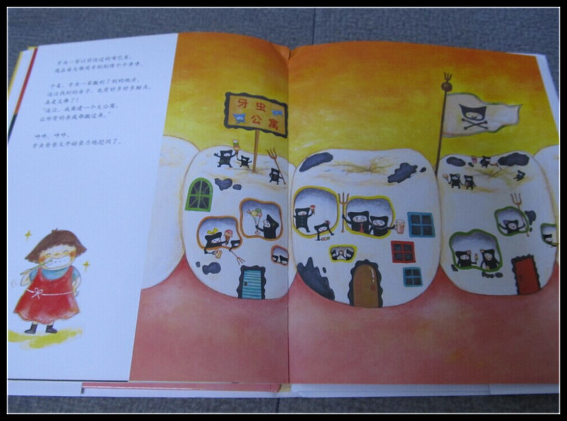 ![]() 绘本的封面是一颗不算洁白的牙齿,但是却像房子一样,被很多黑色的小人占据着,这时Aric小朋友就有疑问了,这几个黑色的小人是谁呢?我告诉他,这就是牙虫啊,也叫细菌,有这种牙虫在的牙齿,就是我们所说的蛀牙了。Aric惊讶极了,原来牙虫这么可怕,像小恶魔一样占据着牙齿,把牙齿挖成了房子,吃牙齿里残余的食物,看封面,应该最爱吃的是糖果或者甜食吧。我认真地点点头,小家伙的观察很细微哦。 这个故事是告诉孩子们牙虫的秘密,因为牙刷来捣乱,牙虫家里什么吃的也没有了,一家人肚子饿得咕咕叫。牙虫爸爸来到“虫牙房产中介”--哇,一座“从不刷牙”的新房子,简直太棒了!蛋糕、曲奇、巧克力,还有甜甜的果汁随便喝!牙虫一家每天过得好开心!身体越来越强壮。有一天,他们正在豪宅里开派对,忽然……牙医把牙虫的房子拔掉了,它们只好搬家,但是它们却不愁搬家,因为爱吃糖果和甜食的小朋友还有很多很多。 一本充满了想象的绘本,让孩子认识了细菌,了解了细菌在蛀牙中扮演的重要角色,更是明白了一个很重要的道理,蛀牙其实是可以预防的,只要少吃甜食,少吃糖,每天坚持饭后漱口、早晚刷牙,就不会被细菌侵害到牙齿,也让孩子能够免受蛀牙的痛苦。这本书里把牙虫刻画的非常形象而又可爱,虽然蛀牙看起来很可怕,但是却不会让孩子感到反感,同时还能让孩子有个防止蛀牙的借鉴,不要让牙虫住到我的牙齿里哦。 ![]() 牙虫一家的派对看起来好开心啊,可是这颗牙齿的小主人却在承受着牙齿带来的疼痛。 ![]() 很可爱而又生动的图画,让孩子了解到牙虫一家在牙齿里的捣乱和最怕什么。 ![]() 拔牙好痛啊,不止从书中可以看到,Aric也是亲眼目睹了爸爸在拔牙时的惨状,但是拔牙可以带走牙齿里的细菌(牙虫),其实最好的办法,还是保护牙齿,防止蛀牙啊。 ![]() 看到这幅图,Aric不禁感叹,一二三颗蛀牙,都烂了,太可怕了!我倒是觉得蛮生动的,很可爱的感觉哦。 ![]() Aric非常喜欢这个故事,我讲过了几遍,Aric又找爸爸讲了一遍,而爸爸讲的故事和妈妈讲的是完全不一样的侧重点。爸爸以身举例,还拿起了电筒对照着自己的蛀牙给Aric讲故事,让Aric觉得特别有趣。老公一边告诉Aric,他昨天去弄牙齿的事情,说有一根很长很长的针扎进牙齿里,然后一直到肉里,很疼很疼,但是比起牙疼,还是要舒服很多的。听得我和Aric有些毛骨悚然的感觉。讲完了故事,老公说不行了,还是得去刷牙,带着Aric又去刷了一次牙齿,Aric再跑来让我看他的牙齿,有没有黑色的洞洞,牙虫一家是不是在他的牙齿里安家,看来这个故事对他的影响还是很深呢。