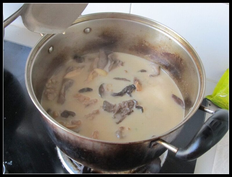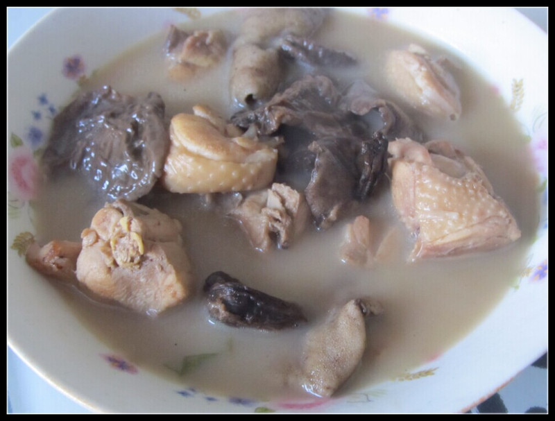我以前从来都不知道老公喜欢松菇的味道,前几天去蒙山的时候,老公在特产店里挑选了很久的松菇,总爱让我闻松菇,我只觉得味道比较冲,要说香还真是没感觉到。不过最终老公还是买回来不少的松菇,蒙山的比较纯正一些,一斤一百元,听老公说我们市区里才卖80元一斤,估计因为我们去买的时候赶上了旅游高峰期,所以价格高一点,但是不得不承认,山上卖的松菇确实要比平时购买的松菇更浓香一些,也更好吃。 自从买回来松菇后,老公就特别热衷于厨房,今天硬是把我赶了出来,说要给我和Aric炖汤喝。其实我还真是很好奇他要炖什么汤呢,就在门口看了看。只看老公把我早前买的鸡腿从冰箱里拿出来化冻切成块,然后把松菇抓了不少出来泡着。这时老公走了出来,我问你要做松菇炖鸡?老公点点头说,我妈跟我说松菇的味道炖出汤来特别好吃,但是我一直没买过,这次去蒙山我就是奔着松菇去的,一定做出我妈说的那种味道。额,我无语了。