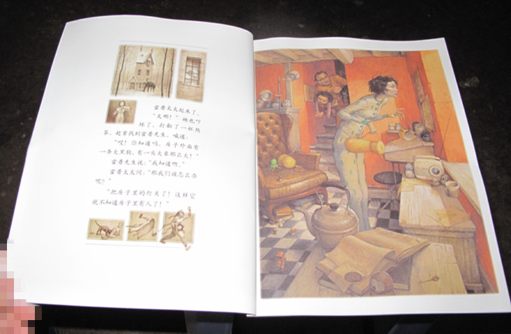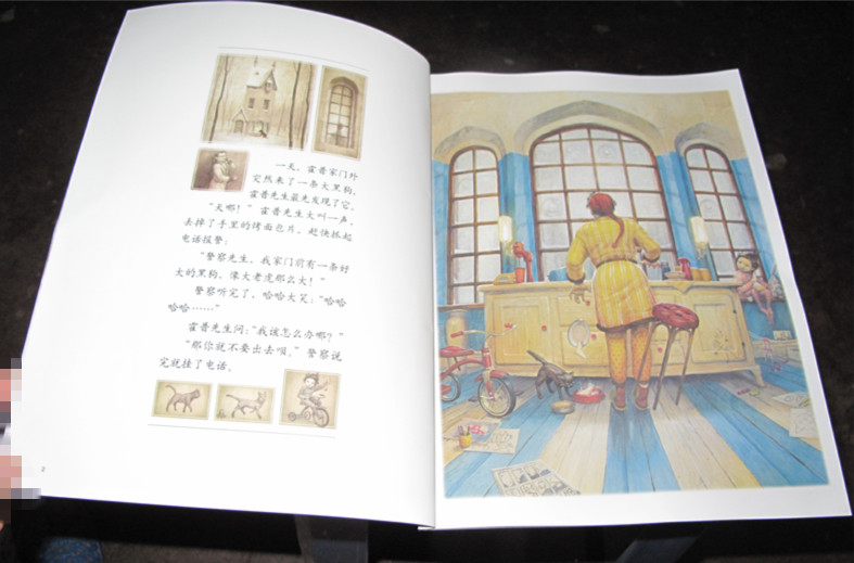 ![]() 国庆节的小长假因为外婆住院,每天白天都是在医院守着的,而这次地带和接力出版社一起又搞了个《国庆盖楼十天乐》的盖楼活动,本着重在参与的头态,完全每天10条的任务就行了,没想到竟然很意外的得知我竟然是第一个就中奖了,只能说我真的很幸运 ![]() 奖品书的随机发的,我收到的是《大黑狗》,书比一般的书要稍微大点,应该是叫长方形的吧,封面比较简单,厚厚的白雪,树木都已经是光秃秃的,房子的门口处有个大大脚印,谁的脚印会是这么大呢?来吧,带着你的好奇心,和我一起看下去吧 ![]() 故事开始咯;霍普家门外来了一条大黑狗,霍普先生吓得大叫,赶紧的打电话报警,说是门前的大黑狗像大老虎那么大,警察听见霍普先生的话都不相信,直接是笑得哈哈的,就告诉他不要出门就挂上电话了。 ![]() 而这时霍普的太太也起床了,她却说是看见外面的大黑狗象大象那么大。 而艾德琳小朋友却说大黑狗象霸王龙那么大,莫腊斯却说是大怪兽。 哈哈,原来每个人的眼光看得都是不一样的 ![]() 罐罐看到这里就在惊呼,好大好大的黑狗呀,是的,这里是专门以整的两页来突出大黑狗的大,而且要远看才能看清楚效果,近看就看见一片黑色了,很有意思的图片 ![]() 而霍普家最小的孩子,点点却跑出去了,他竟然带着大黑狗钻进了矮树林里 ![]() 点点又带着大黑狗跑向结冰的池塘,穿过桥洞,滑过了冰面,大黑狗还是一直紧紧的跟着他 ![]() 又跟着点点来到了游乐场 ![]() 最后还跟着点点一起回到了点点的家里,可大黑狗到了点点家就变小了,这样大家都不再害怕它了 ![]() ![]() 这个故事主要告诉大家,遇到比自己大的东西时不要害怕,要勇敢的去解决问题才行的,逃避可不是办法的,要有信心去解决好你所遇见的问题。 很有意思的一本书,就连我在写这个帖子时,罐罐就在旁边时不时的来看看这本书,看来这本书对他的吸引力还是很大的。 本作品未经作者许可不得转载,转载请征求作者意见。擅自转载使用,将保留追究其法律责任的权利!