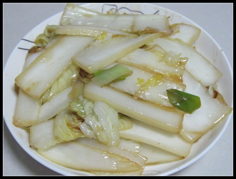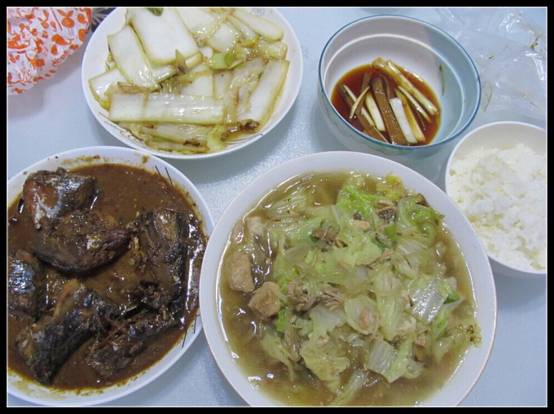 做好了红烧鲅鱼,接着做什么呢,想到前几天做了一次炖白菜,那叫一个香啊,干脆就再炖一次大白菜吧。不过白菜我比较喜欢吃菜叶,而菜帮怎么办呢?如果扔掉实在太浪费,想到还不如炒个醋溜白菜呢,经常去餐厅都会点这个菜,好像也就是白菜帮来做的。于是我把白菜切成两段,白菜帮用来炒醋溜白菜,而白菜叶就用来炖着吃。白菜帮切成段以后翻炒,加入少许醋,然后放入盐、鸡精即可,清炒比较可口嘛。 做炖白菜还是先泡了一些粉条,然后放在一起炖的,我特别爱吃粉条,还记得小时候都是放的粉皮,那滋味绝对要点一个赞啊,可惜我都好久没买过粉皮了,也不知道该怎么做了,所以只好每次都放粉条。而肉呢,依旧放的是提前做好的红烧肉,我发现这样加在炖白菜里,味道要比放大肉块好吃呢。老公看我做好了菜赶紧上前看,还夸赞我很有创意。哈哈,突然发现会做饭也是一件好事啊,最起码都是我爱吃的口味。 ![]() 醋溜白菜,用白菜帮炒出来的。 ![]() 白菜粉条炖红烧肉,用的白菜叶做的。 ![]() 红烧鲅鱼、醋溜白菜、白菜粉条炖肉,看起来还是蛮有食欲的。 ![]() 鱼呢,肯定要放在Aric的面前啦,这小子最近特迷鱼,我正在考虑学做其他鱼的,就是不知道哪种鱼的鱼刺最好,又最好吃。