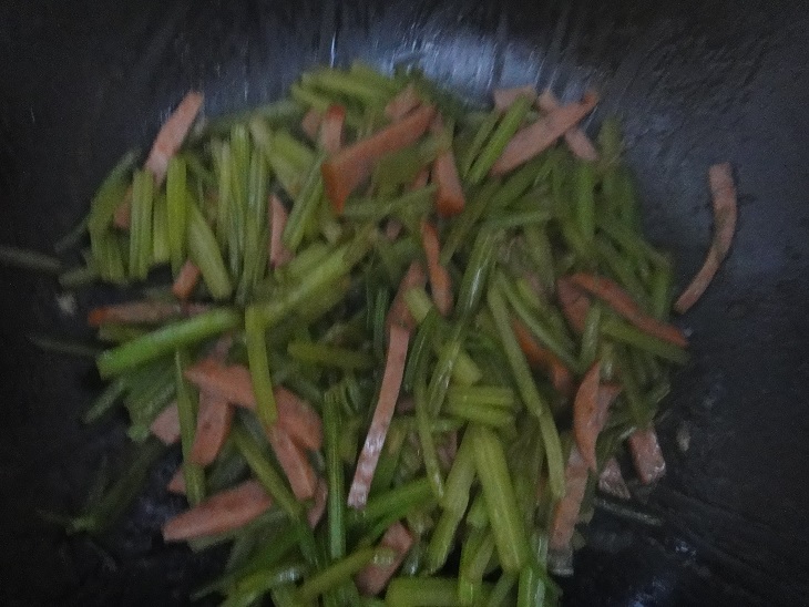 我们经常用黄瓜和炒火腿,芹菜还没试过呢,看着不错。