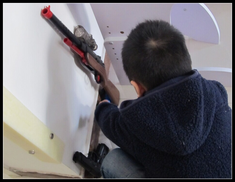 Aric没有起床气令我很满意,虽然最近因为天冷他总想睡懒觉,但是只要你挠挠他,他很快就会笑着起床,而且一整天都会心情倍儿好。我俩洗刷过后,都分别自己把衣服穿好,Aric现在已经长大了,衣服都是自己穿,鞋也是自己穿,不过唯有袜子,他始终都穿不好,总能把脚后跟的位置放在了上面,搞得每次都会满头大汗。等一切准备就绪了,我把包包什么的都拿好,Aric这时突然不走了,咦?小家伙在干嘛捏? ![]() 原来今天穿的外套有个大帽子,Aric戴上了帽子后发现挡住了眼睛,可是他没有把帽子掀开一点,反而又往下拽了拽。从我的位置看下去,就完全看不到Aric的脸了,Aric倒是觉得特别好玩。而我如果和他平行,那么也只能看到他的鼻子和嘴巴。这时Aric把他的步枪拿了起来低着头,帽子盖到了眼睛上,然后对准了我,问我:“妈妈,你看我这样帅吗?”说着还摆了几个姿势,瞬间让我感觉这孩子咋就那么自恋呢。 ![]() 不过我还是认真的回答他,帅呆了、酷毙了!Aric哈哈大笑,说“妈妈赶紧拿相机给我拍下来,我要给爸爸看我这个帅哥。”我在拍照的时候,Aric又摆了几个姿势,绝对的自恋啊!因为我们时间还很充裕,所以我也就很配合Aric玩了一会,不过再不走可就要赶时间了哦,Aric说等等,然后就把他的步枪立在了书桌旁边,地板有点滑,在立的时候总是会歪倒,我也很耐心的等待Aric,因为Aric是个处女座的孩子,如果不弄好,他会不舒服,绝对的将求完美啊。 ![]() 终于把步枪立好了,我问可以走了吗?Aric想了想,问还有几分钟可以给他?我看看时间,可以再给你5分钟。Aric很高兴的拽着我的袖子让我低下头,然后给了我一个很响亮的kiss,接着Aric就去沙发把另外几只枪拿出来,分别立在了墙面上。不过因为其中一把枪无法竖着立,他也只好很无奈的横着靠在墙上,嘴里还念叨着“哎,买错了,怎么买了个另类呢。”我忍着笑看他把枪放好,他才心满意足的看了一圈,和我出门上学去喽。 ![]() 摆出这个姿势的时候,Aric问我:“妈妈,你看我这样帅吗?” ![]() 自恋的小家伙特别喜欢弄些奇怪的样子,不过这个样子给我的感觉好萌哦。 ![]() 摘了帽子,我依旧是个最帅的帅哥,哈哈 ![]() 不急不忙的在把他的枪靠在墙面上,这孩子太讲求完美了,不放好,他就不会出门。 ![]() 终于放好了,4把枪立了3把,只有一把不配合的躺着。 ![]() Aric最近特别迷恋警察,不过他可不是说要惩奸扶弱,而是要保卫地球哦。(绝对看奥特曼看多了)