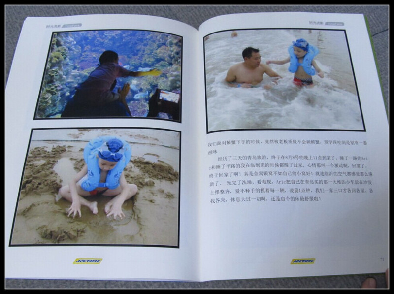 有很多好的活动我都是不知道的,但是却有很多好朋友来通知,因此我是纯粹跟团去参加,蹭个好玩的抱回家,默默高兴着。看到姐妹们都在晒自己做了作家的相片书,我也赶紧来晒一下,感谢你们,让Aric可以拥有自己的一本书,也可以让我们永远都不会忘记Aric的成长历程。做这本相片书一共耗费了我2个多小时的时间,因为我一直都有记录Aric成长总结的习惯,因此做的并不费劲。 本书一共73页,算是很大容量的书了,而且和以往的相片书不同,这本是可以加文字的。有的喜欢多一些图片,有的喜欢多一些文字,更多的是图文并茂,而我就是其中的一员。书里有Aric出生、满月、一月、二月、三月……十月、一岁、两岁、三岁、四岁、我的亲亲父子俩、Aric的第一次手工作品制作过程、Aric的第一次海边游、Aric的趣事等内容,算得上是从Aric出生到现在最全的一本书。