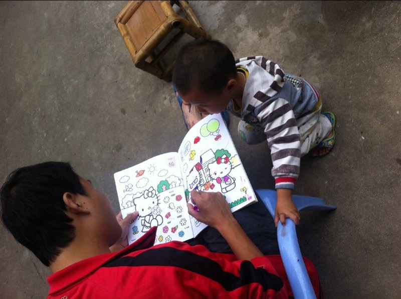 爸爸妈妈都陪宝宝涂色,你们都是非常称职的父母。