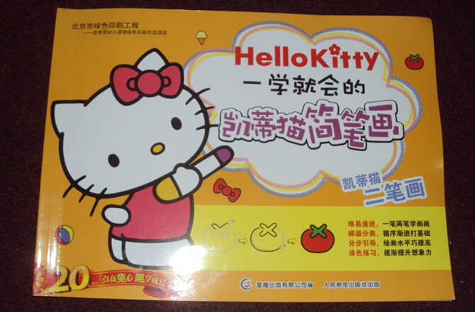 我家小子现在是中班的小朋友,他一直都很喜欢画画的,不过大部分都是他自己随心所欲地涂鸦,我也没有刻意给他指导什么的,主要是因为我自己对于画画方面的技巧也是一窍不通的呀!这一次可以有幸收到来自童趣出版公司的以卡通形象Hello Kitty为主角的《一学就会的凯蒂猫简笔画》系列中的《凯蒂猫二笔画》这一本知道孩子画简笔画的好书,真的是让我家小子非常高兴呀!虽然我们是男生,但是他也是非常喜欢凯蒂猫的哦!