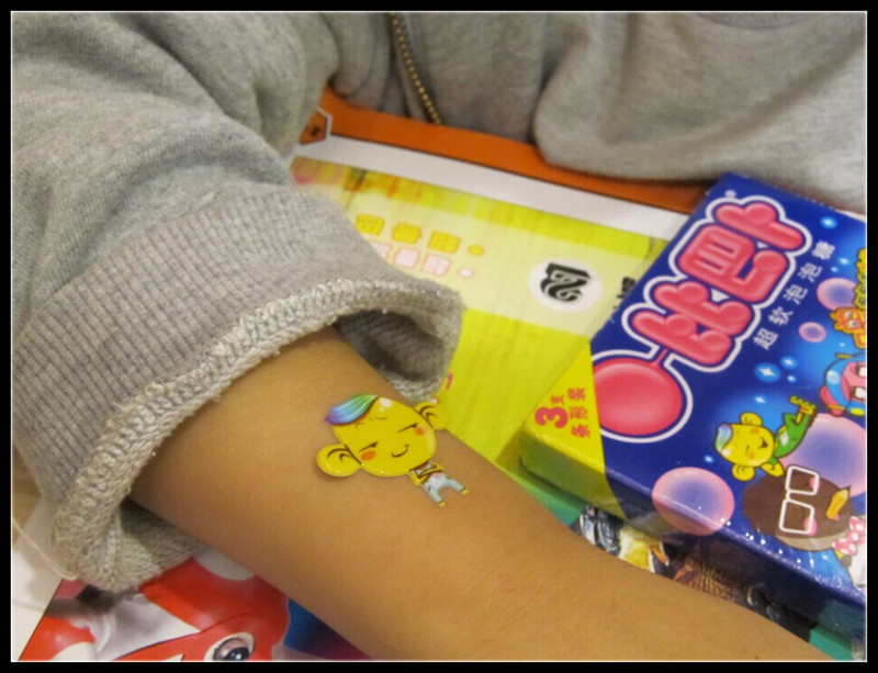 看着Aric被贴的脸,我捂着嘴偷笑,可是Aric却觉得很好玩啊,贴完了剩下的就是吃了。Aric喜欢泡泡糖是因为妈妈可以吹泡泡,但是Aric吹不起来。他让我吹泡泡,有时会伸出手指来戳破泡泡,有时又忍不住想过来把泡泡咬走,到最后Aric有些焦急了,“妈妈,为什么你能吹泡泡?而我不能呢?”我说因为你是小朋友,我是大人啊,而且妈妈说话说得好,就是因为舌头运用的好。 Aric知道了原因,就告诉我,他也一定快快长大,以后也像妈妈一样把泡泡吹得大大的,比妈妈的还大。那么宝贝,想快快长大就要多吃饭饭哦,Aric立刻攥紧了小拳头“妈妈不要小看我,我吃的比妈妈还多呢。”我终于没有忍住,赶紧抱住了Aric,狠狠的亲了他几口,开始蹂躏Aric的小脸。当老公走出来看到我们的玩闹,纳闷的问我“我怎么不知道你是正太控啊!”哈哈,没错,我就是个正太控,超爱这种萌萌的小孩呢。 ![]() 看Aric贴的贴纸,可爱吗? ![]() 剩下的也没想浪费,就贴到了胳膊上。 ![]() 要吃泡泡糖喽,Aric做分赃的准备。 ![]() 小家伙还是蛮大方的,绿色、蓝色都是他的,而红色、粉色都送给了妈妈呢。