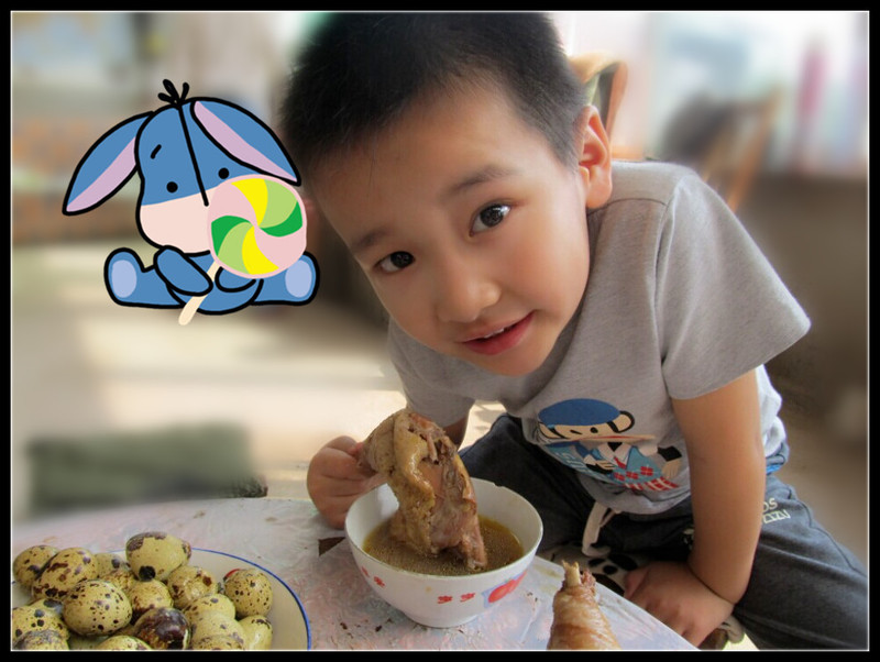 上周奶奶经常打电话来让Aric回去玩玩,说很想Aric,虽然Aric在城市里生活,可是心里也是常常挂念着爷爷和奶奶的。趁着周日有时间,我们赶紧去奶奶家走一走,当天去当天回,也不影响第二天工作上学。在路上奶奶又打来电话,说给Aric炖了鸡汤,Aric原本带了一大堆的零食,这回也不吃了,就挂念着奶奶的鸡汤呢。除了鸡汤以外,Aric还想到了另一个问题,就是他送到奶奶家的小黄和小黑,难道鸡汤是用它们炖的? 到了奶奶家,奶奶已经做好了饭,很简单,但是却非常用心。有小朋友都会喜欢吃的鹌鹑蛋,这是专门煮给Aric吃的,可惜我一直不敢吃鹌鹑蛋,总觉得这么小的小动物吃掉好可怜。为此婆婆没少笑话我,令我脸红了好大一会。还有凉拌的咸菜,这是专门做给老公的,让老公可以带一罐子回家吃。再者就是熬了一天、浓郁的鸡汤,奶奶说这是老母鸡炖的,非常滋补,而且这是自家养的鸡,非常干净又好吃哦。
